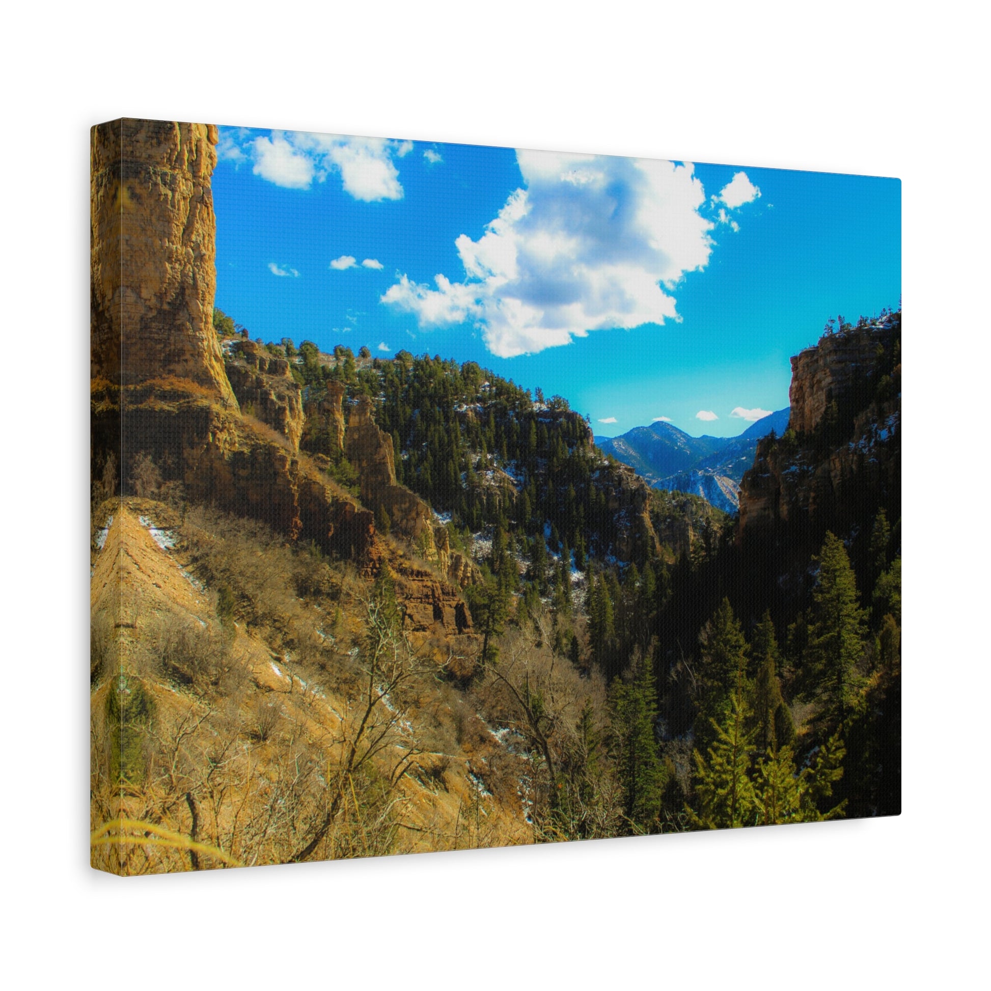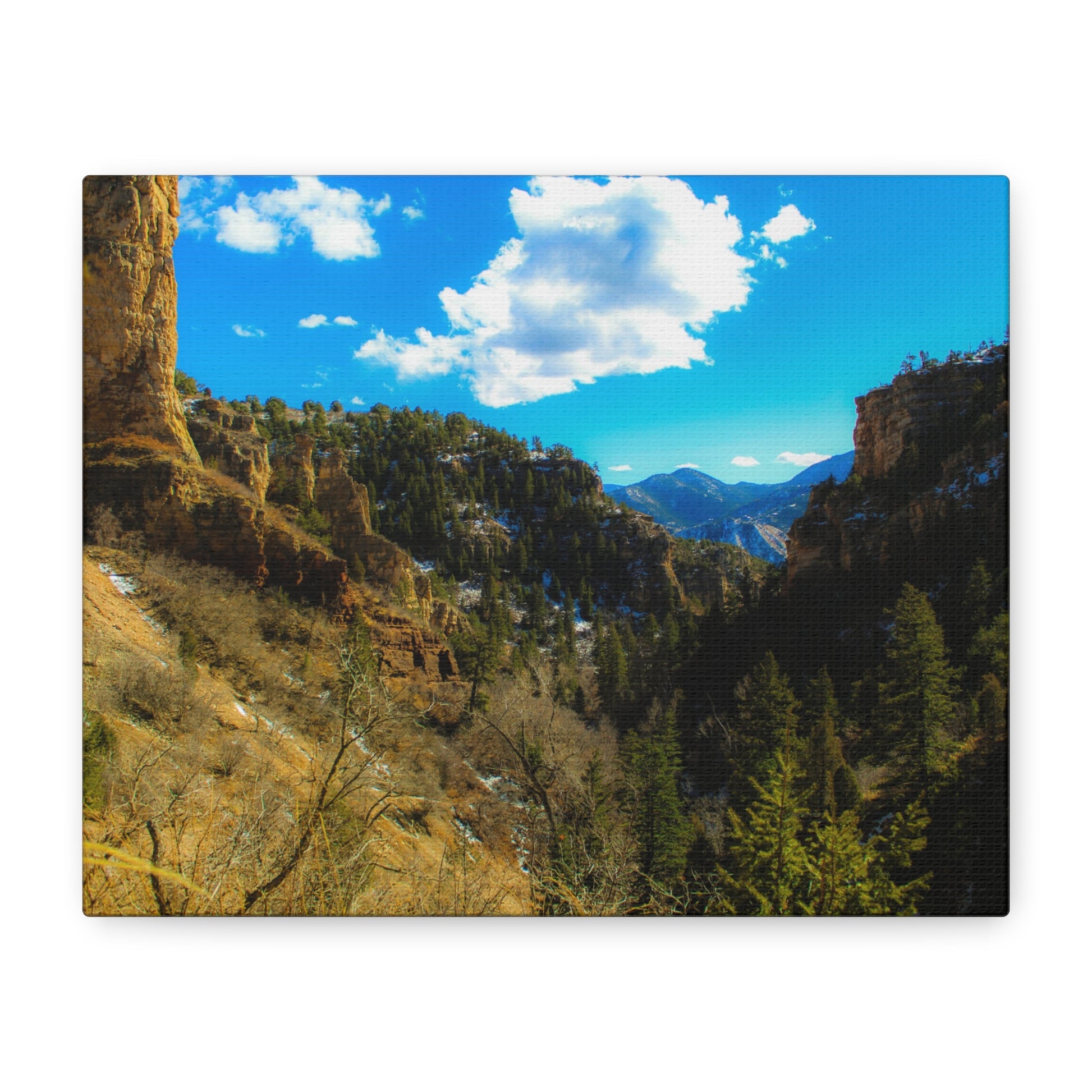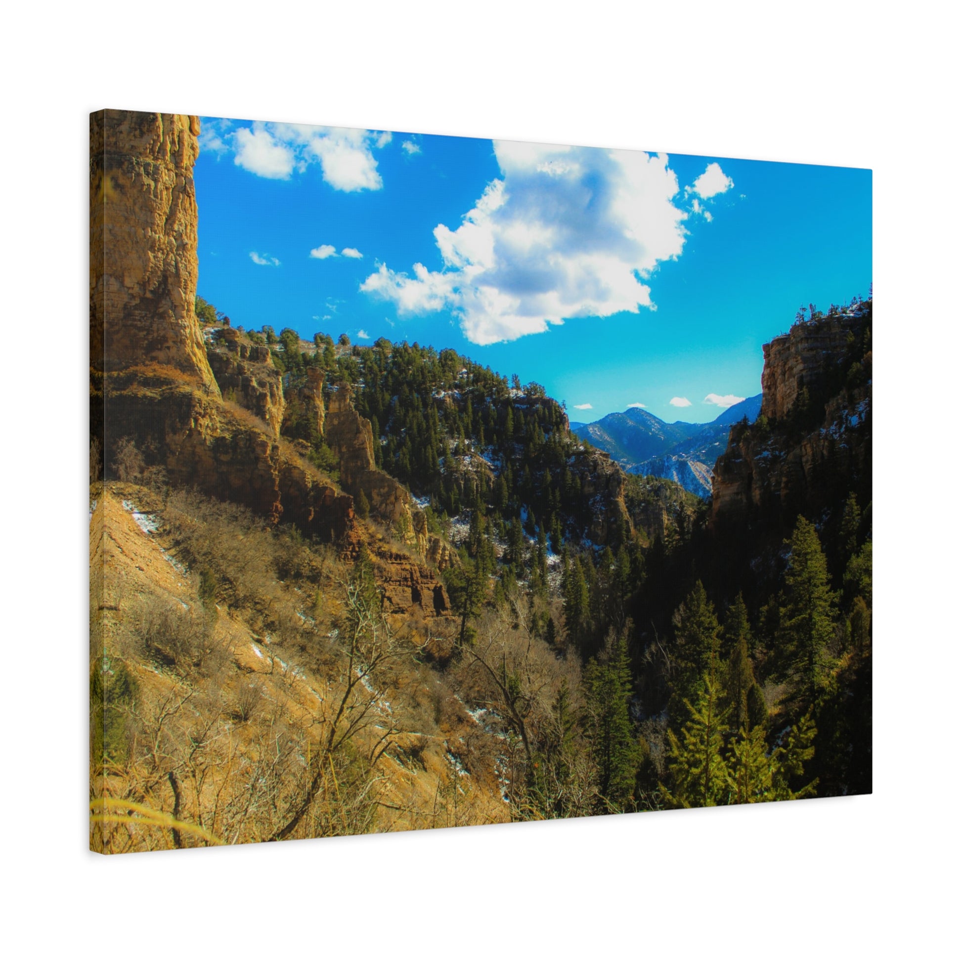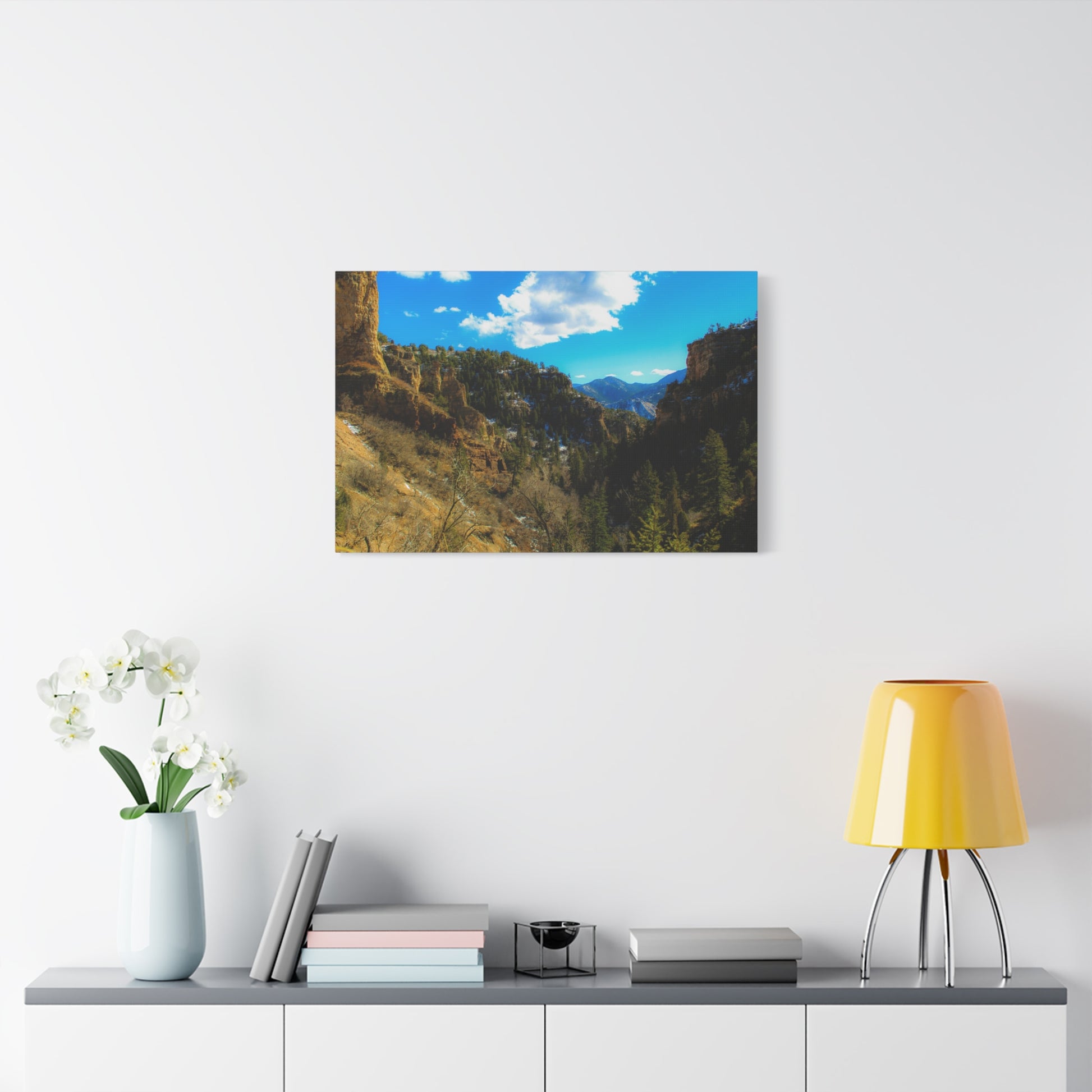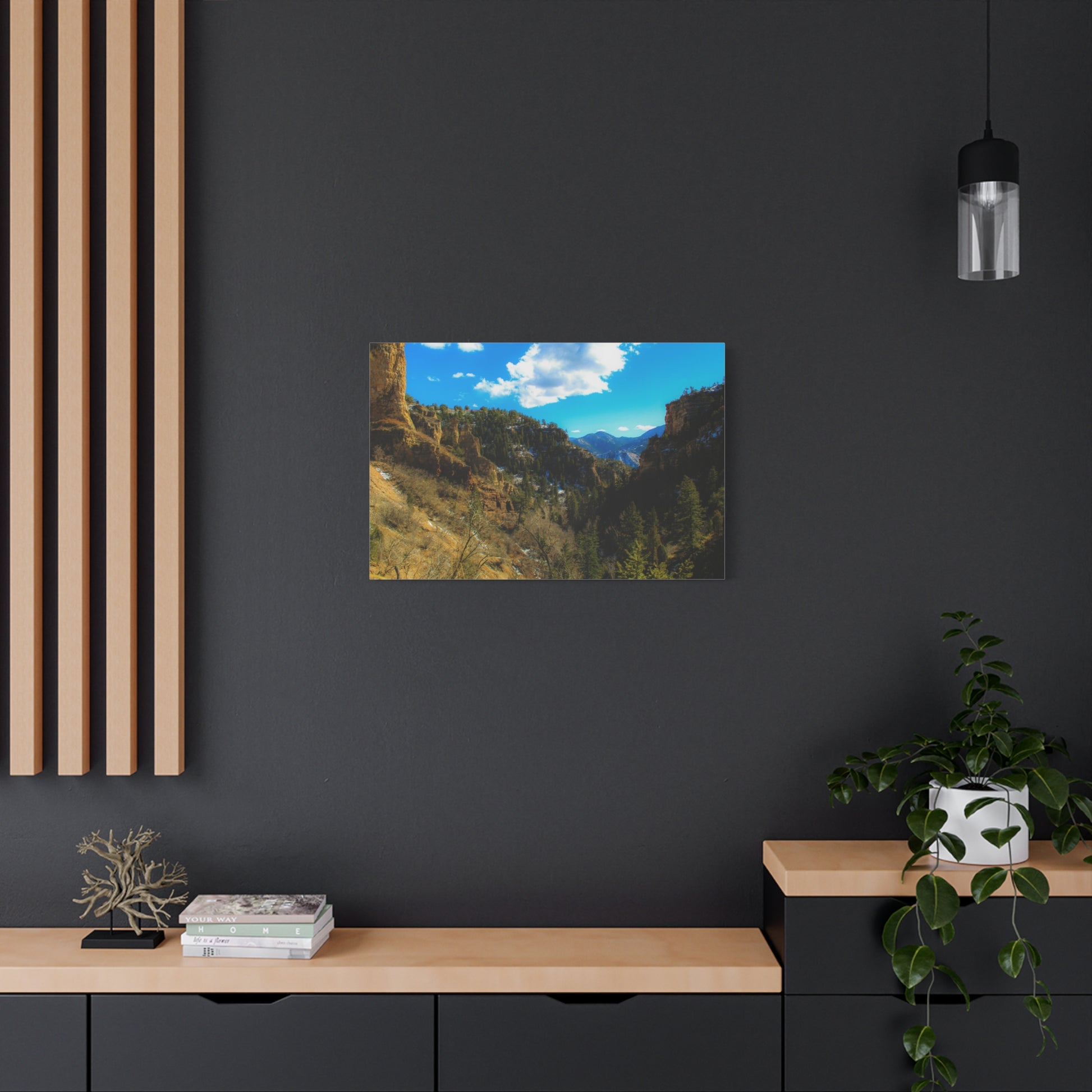 Bring the peaceful atmosphere of a valley with trees and a blue sky into your home with this matte canvas print. Perfect for nature lovers and those who appreciate simple beauty. Ideal for decorating a living room, bedroom, or office. Great for nature-themed home decor, Earth Day, or as a gift for outdoor enthusiasts.