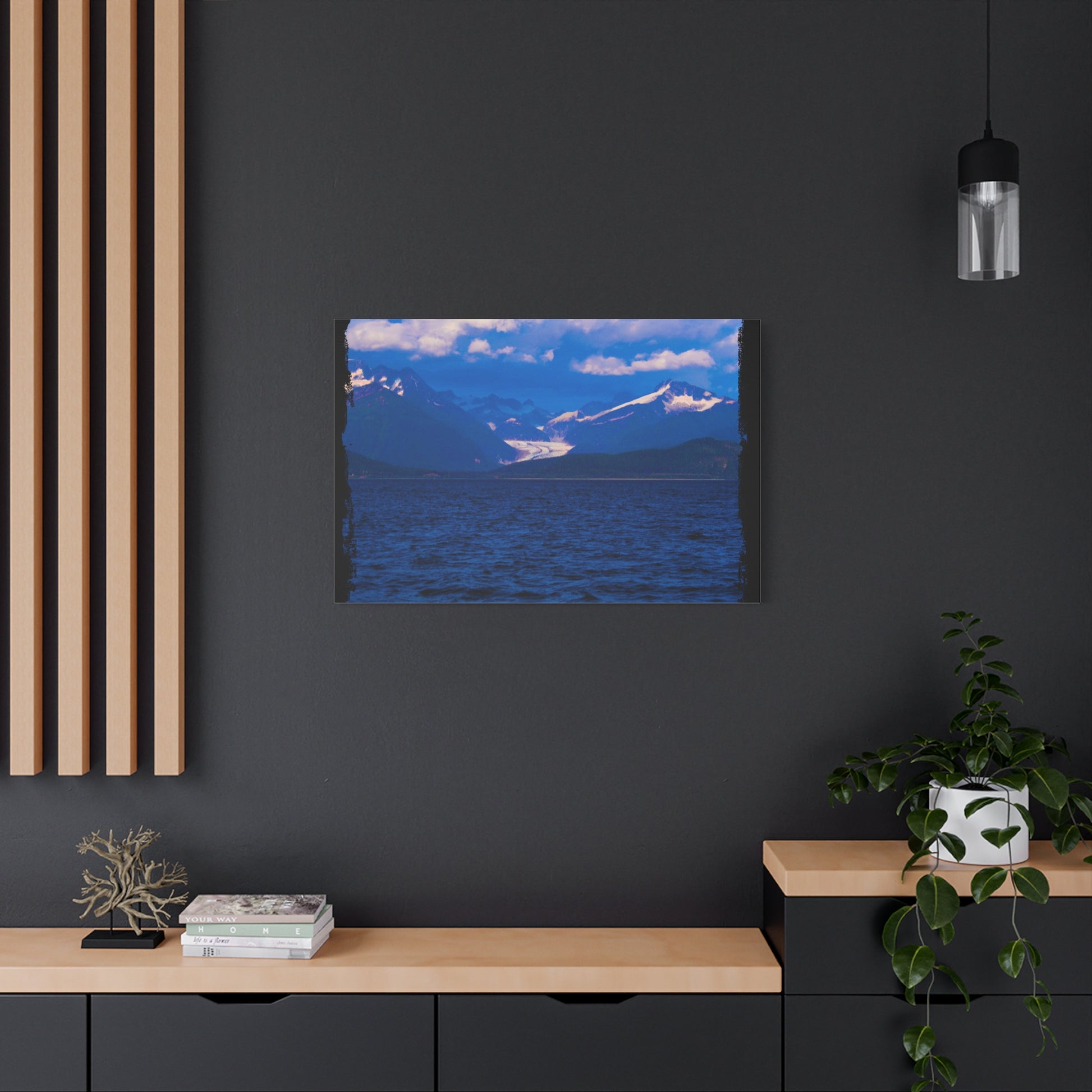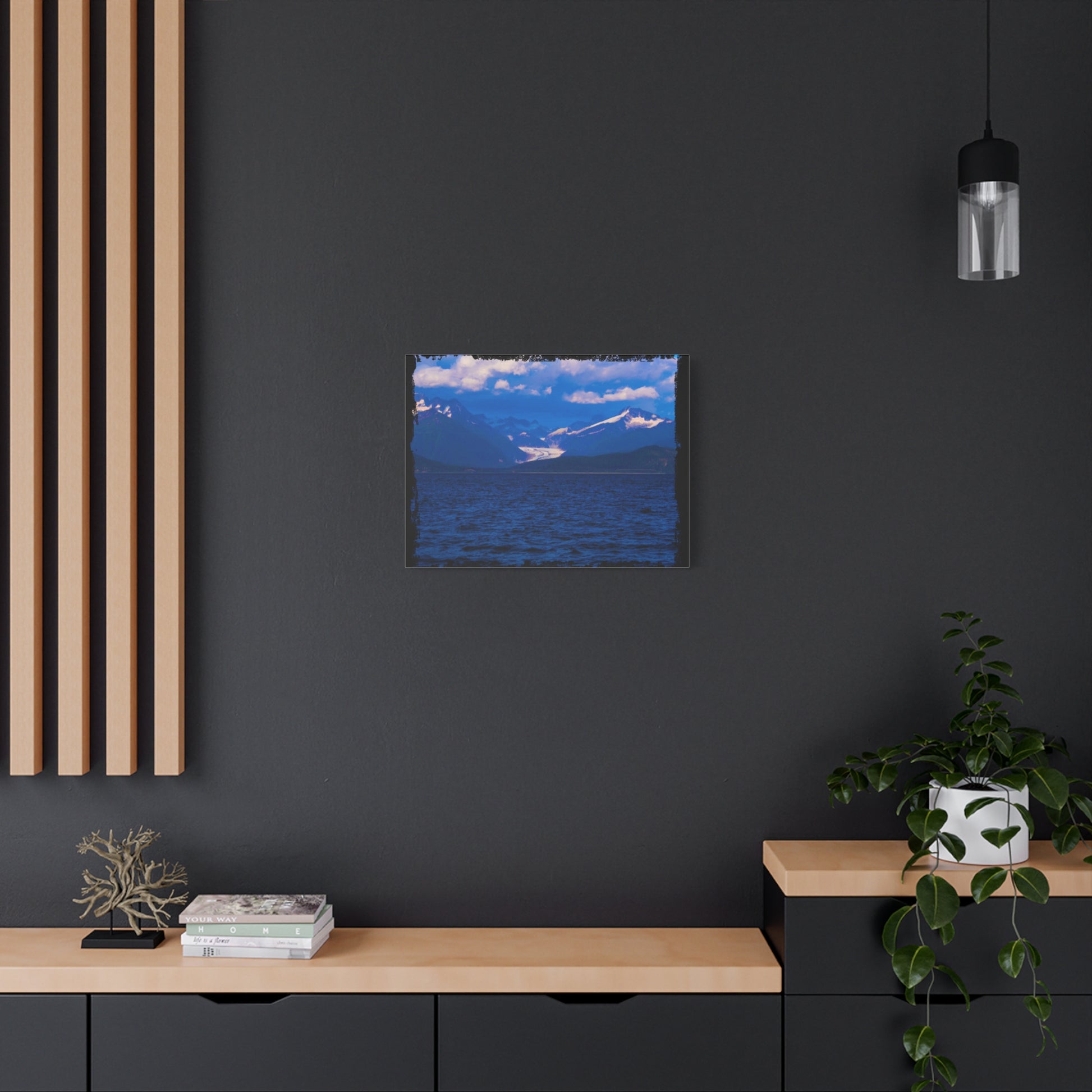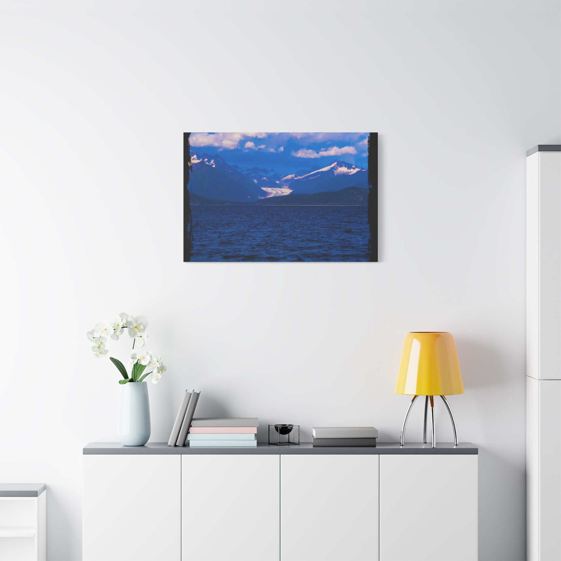 Experience the serene beauty of a distant glacier with this matte canvas print. Perfect for nature lovers and photography enthusiasts, this unique piece can bring a calming atmosphere to any room. Ideal for those looking to add a touch of elegance and tranquility to their home decor. Great for gifting on occasions such as birthdays, housewarmings, or holidays.