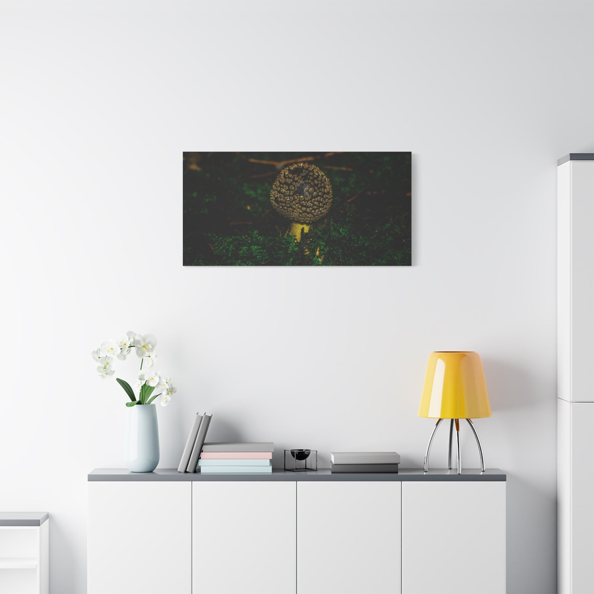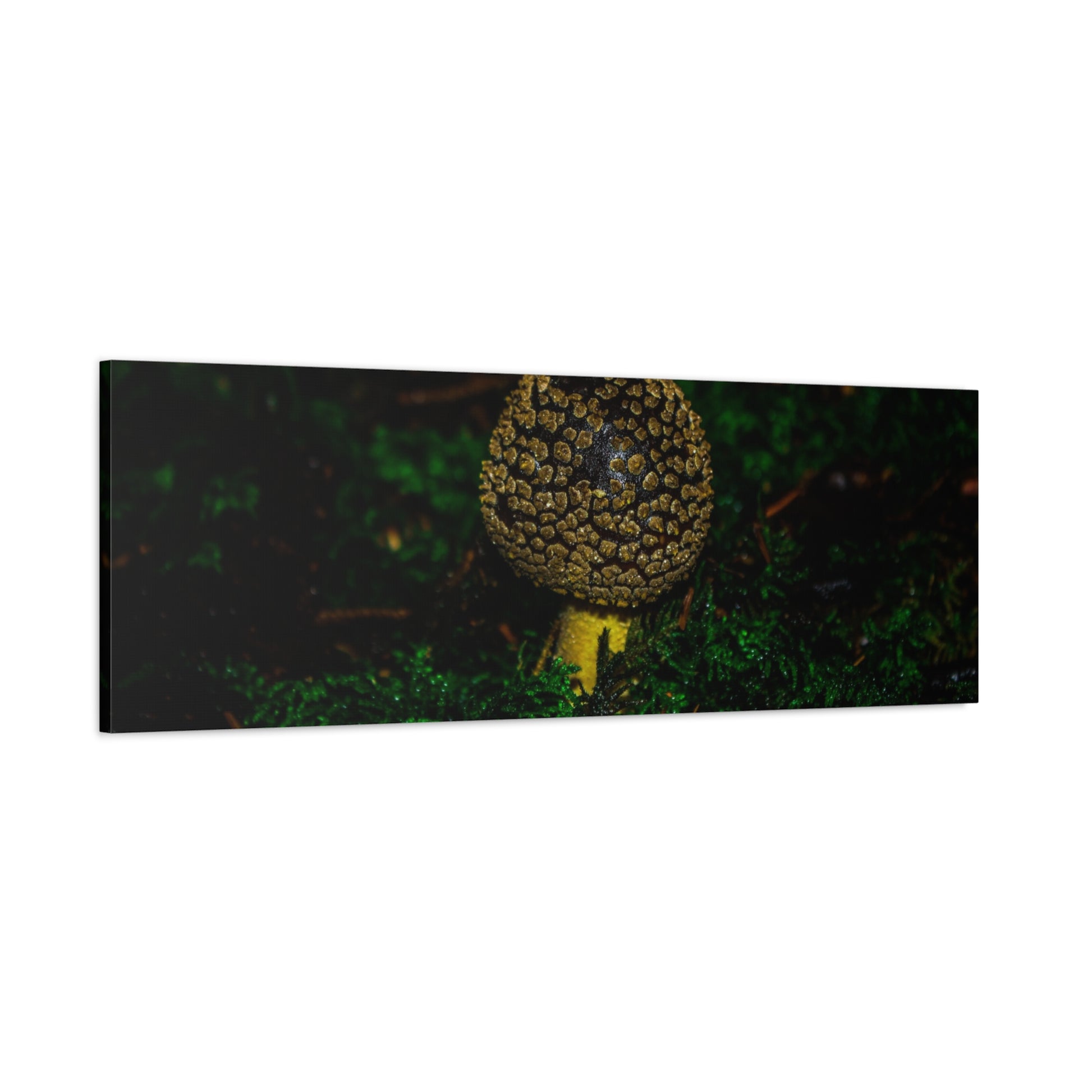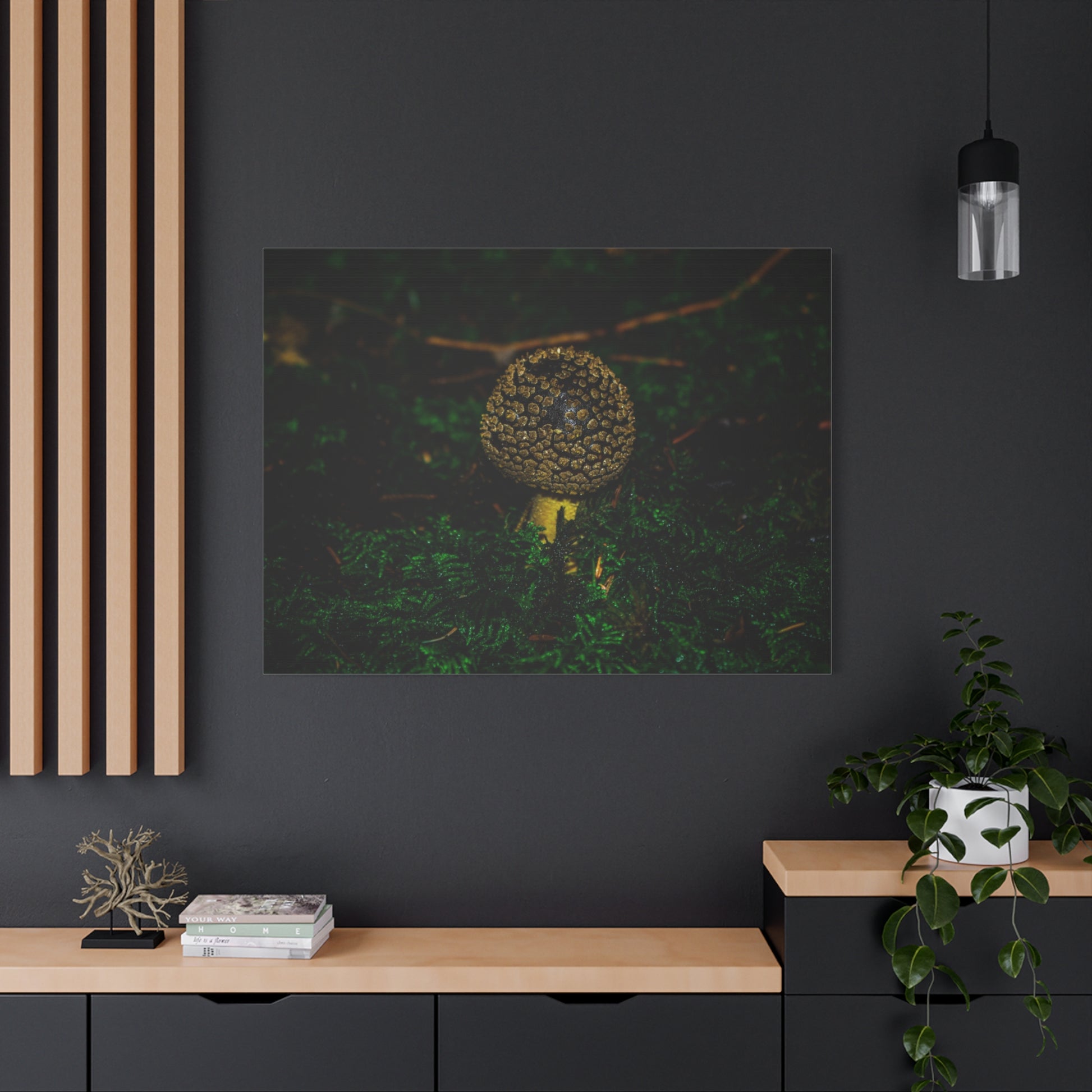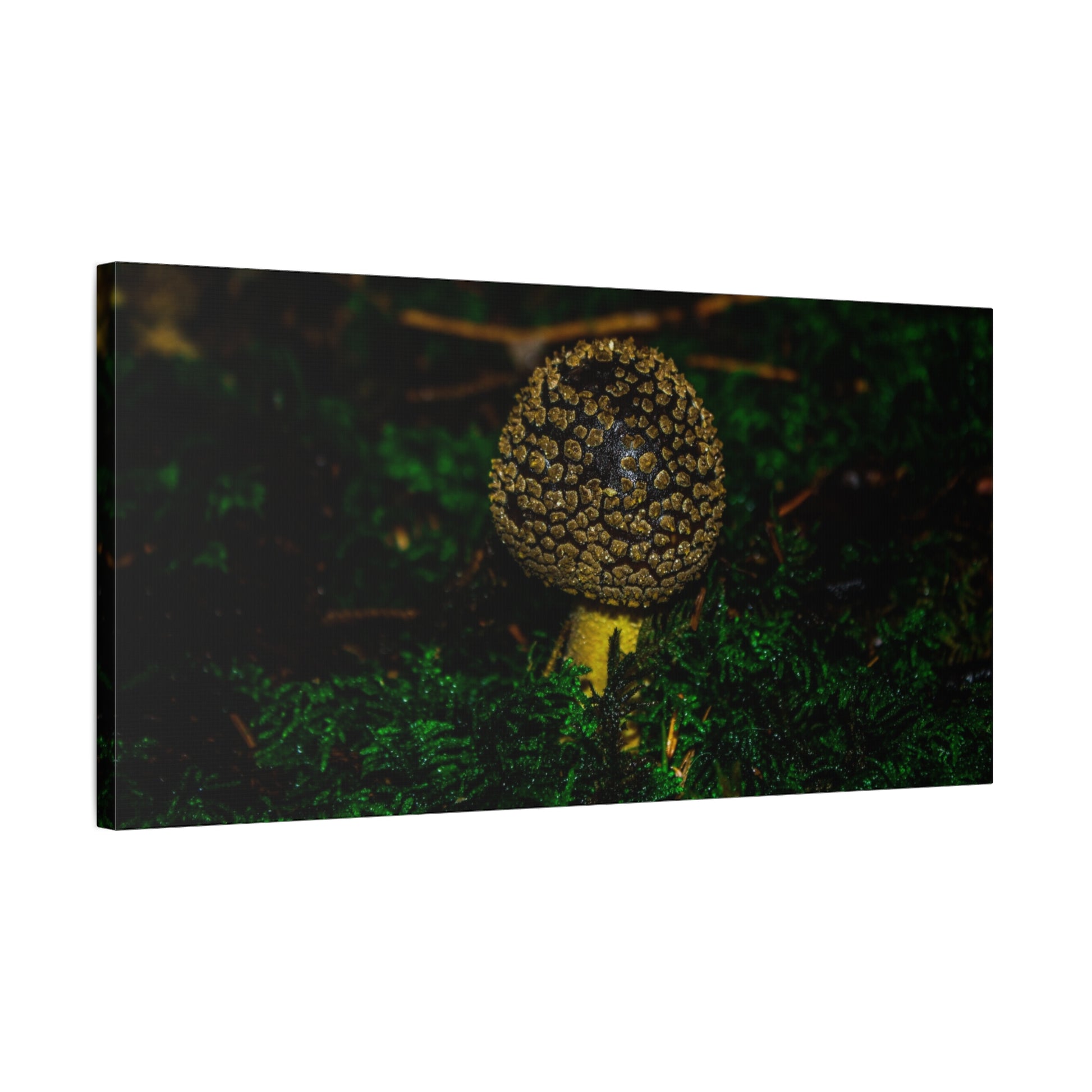 The Micro Mushroom canvas print exudes a whimsical and playful vibe, perfect for adding a touch of charm to any room. This sustainable product is relevant for nature lovers and those who appreciate unique artwork. Ideal for gifting on birthdays, housewarmings, or as a special treat for oneself.