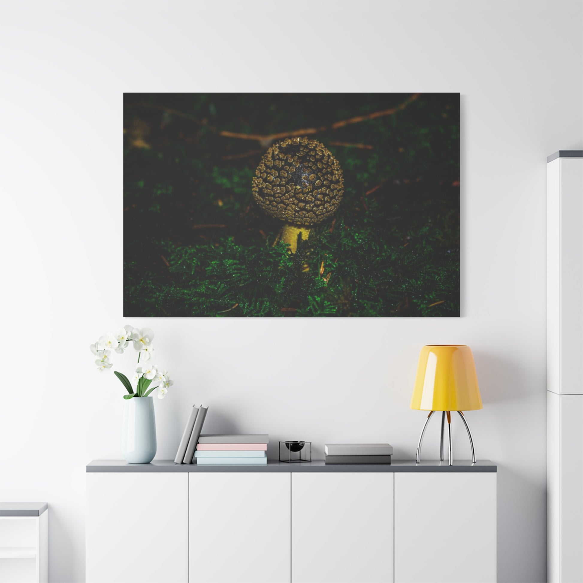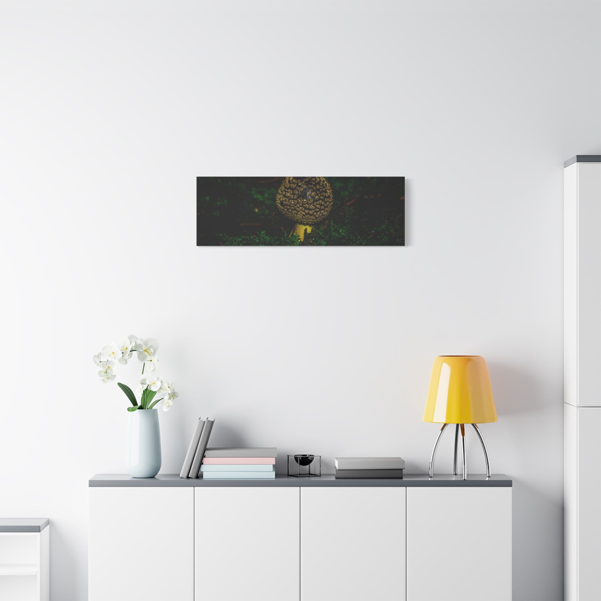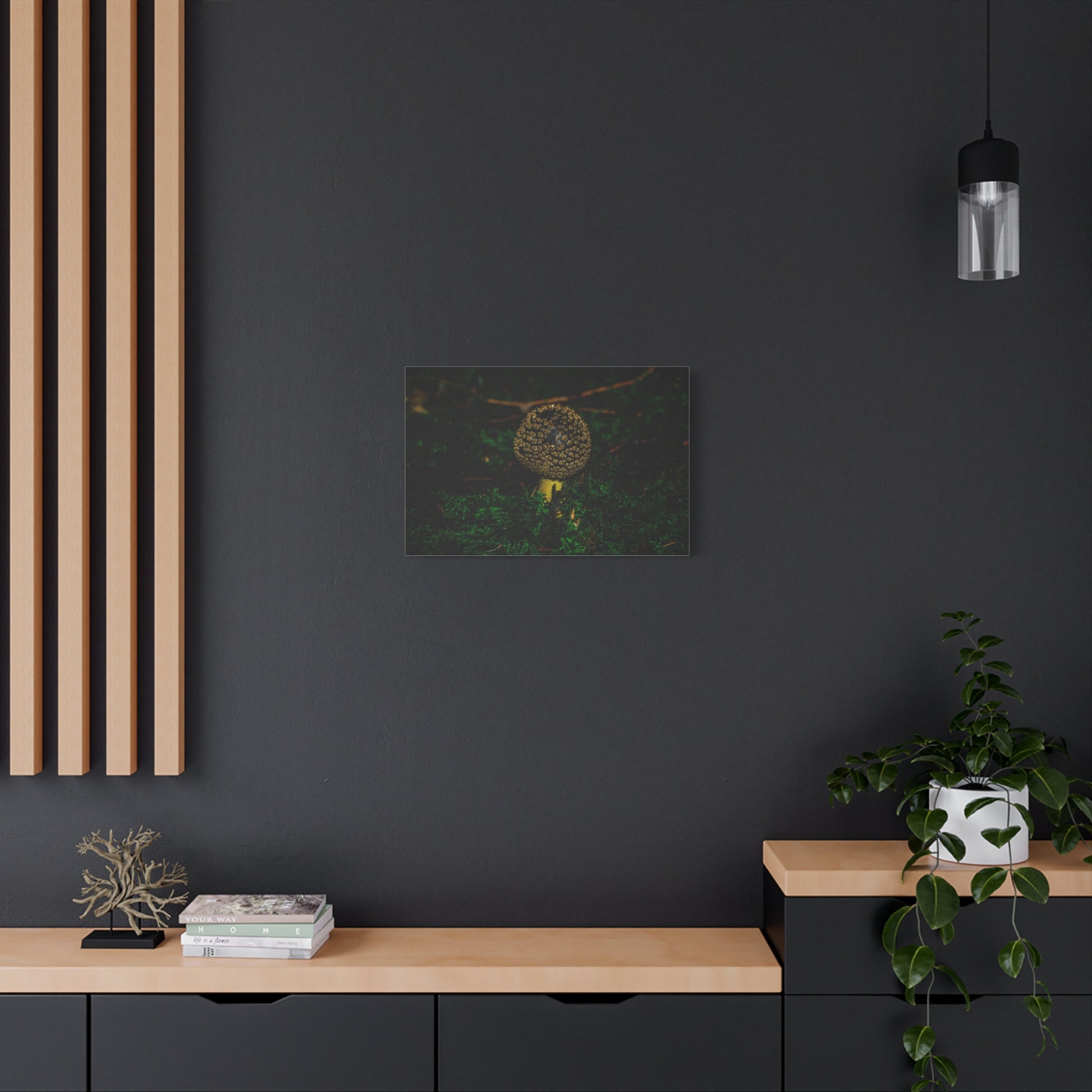 The Micro Mushroom canvas print exudes a whimsical and playful vibe, perfect for adding a touch of charm to any room. This sustainable product is relevant for nature lovers and those who appreciate unique artwork. Ideal for gifting on birthdays, housewarmings, or as a special treat for oneself.