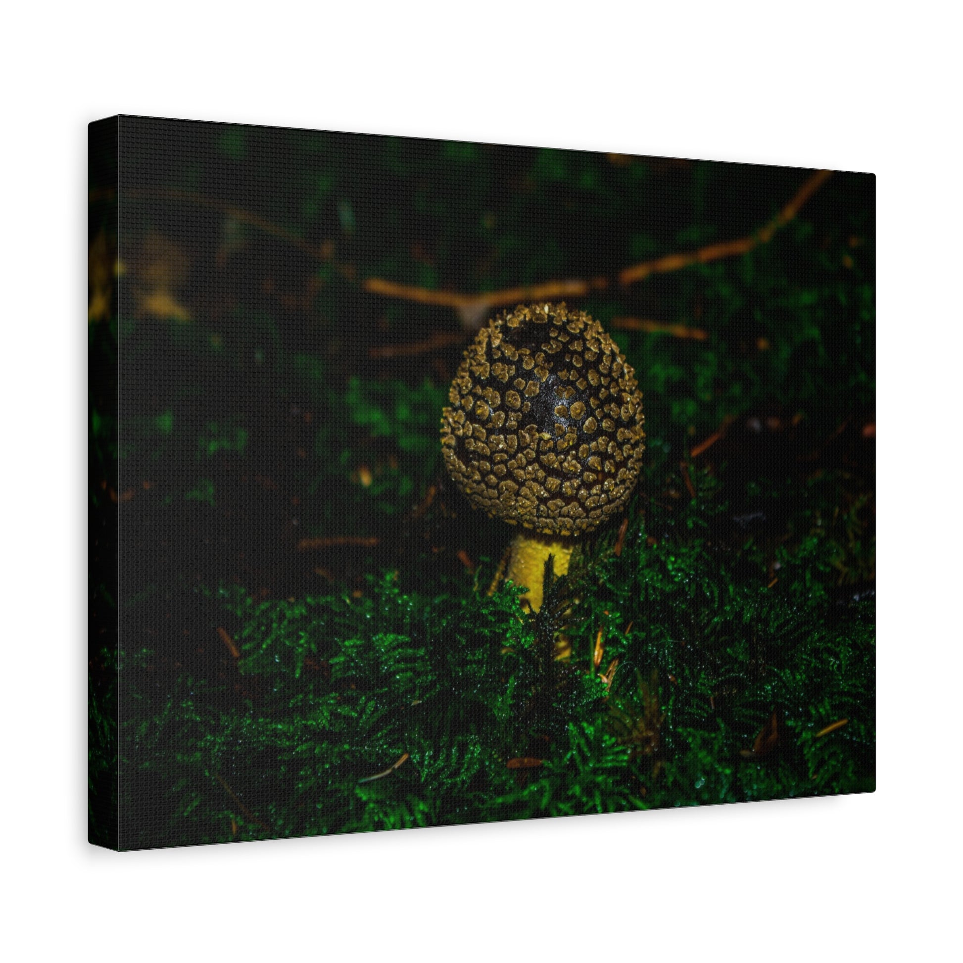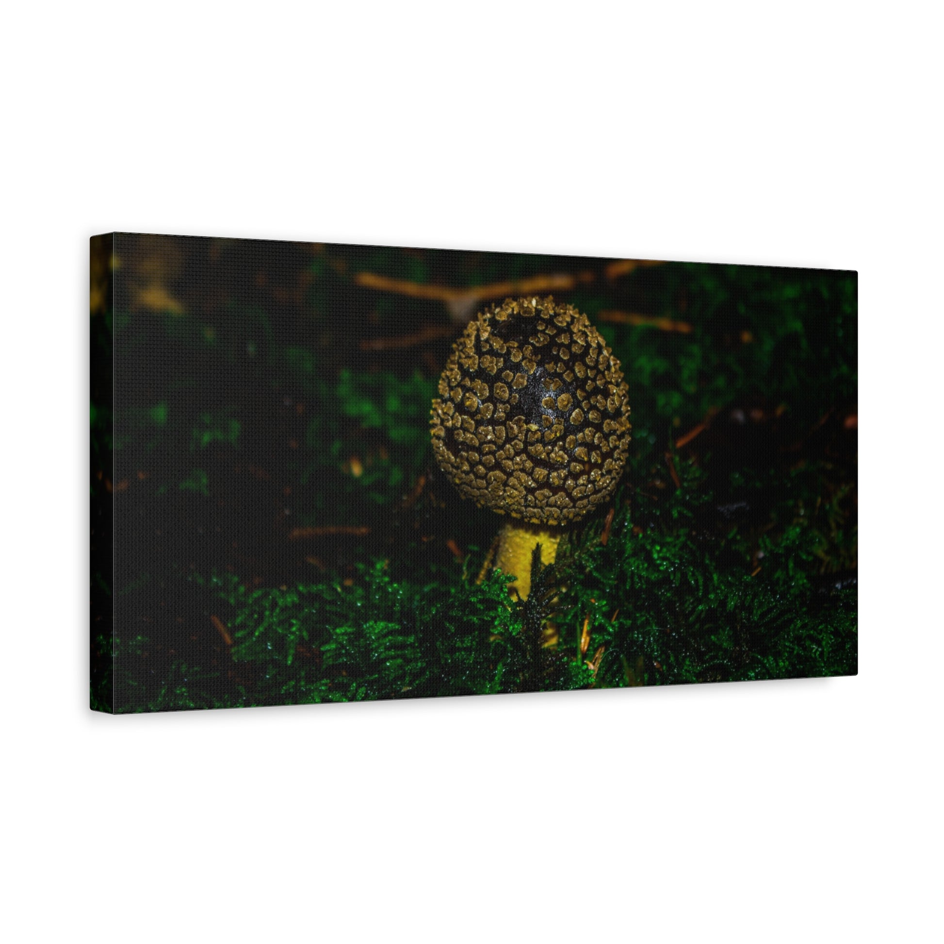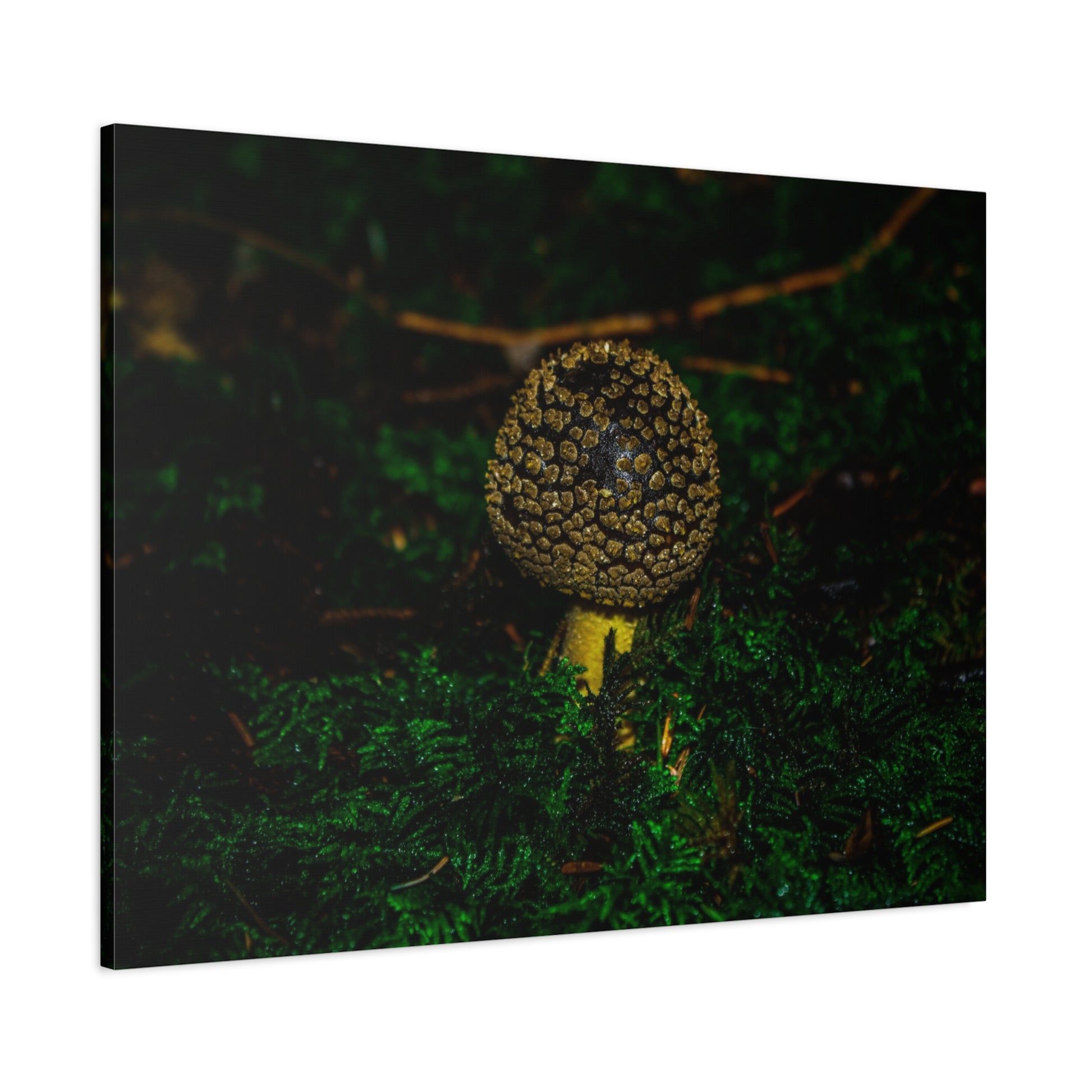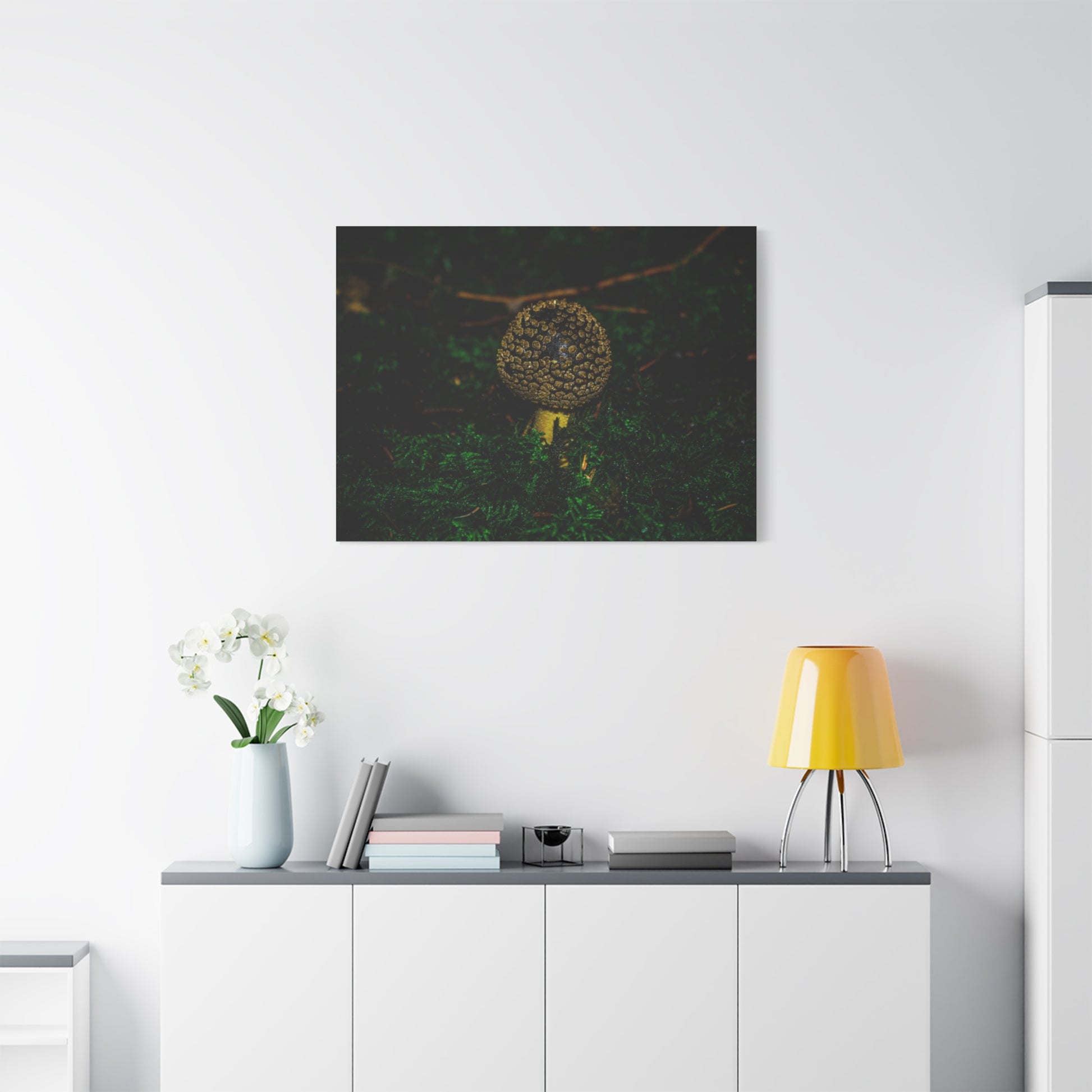 The Micro Mushroom canvas print exudes a whimsical and playful vibe, perfect for adding a touch of charm to any room. This sustainable product is relevant for nature lovers and those who appreciate unique artwork. Ideal for gifting on birthdays, housewarmings, or as a special treat for oneself.