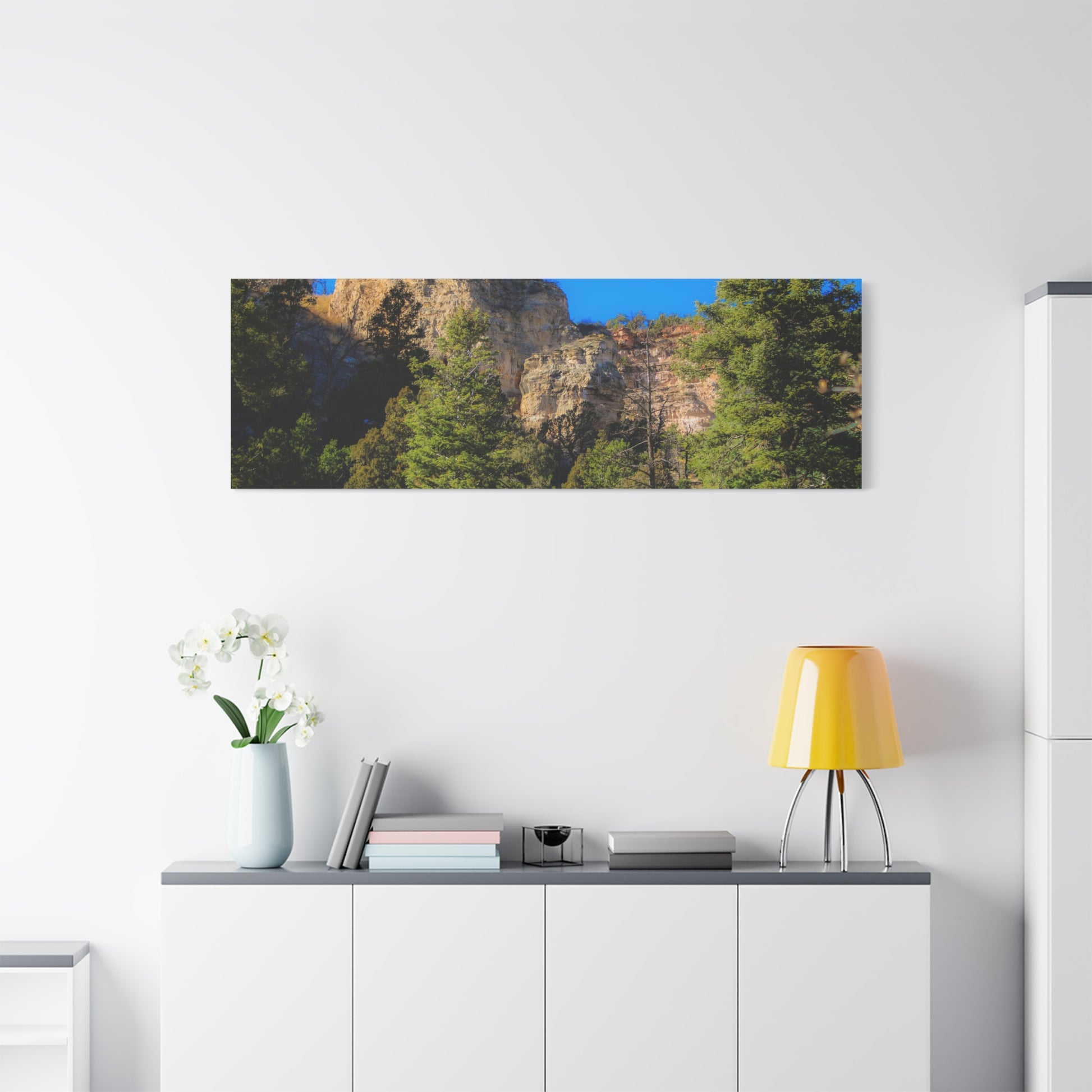 Bring the beauty of nature into your space with this stunning canvas print featuring a towering cliff, green trees, and blue skies photography. Perfect for nature lovers and those seeking a peaceful atmosphere in their home or office. Ideal for nature enthusiasts, hikers, and outdoor adventurers. Great for decorating homes, offices, or cabins. Perfect for Earth Day, Arbor Day, or National Park Week celebrations.