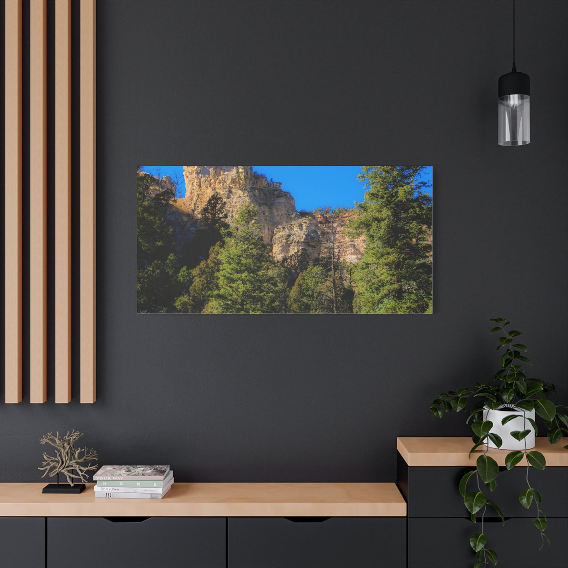 Canvas Print - Towering Cliff Green Trees Blue Skies Photography