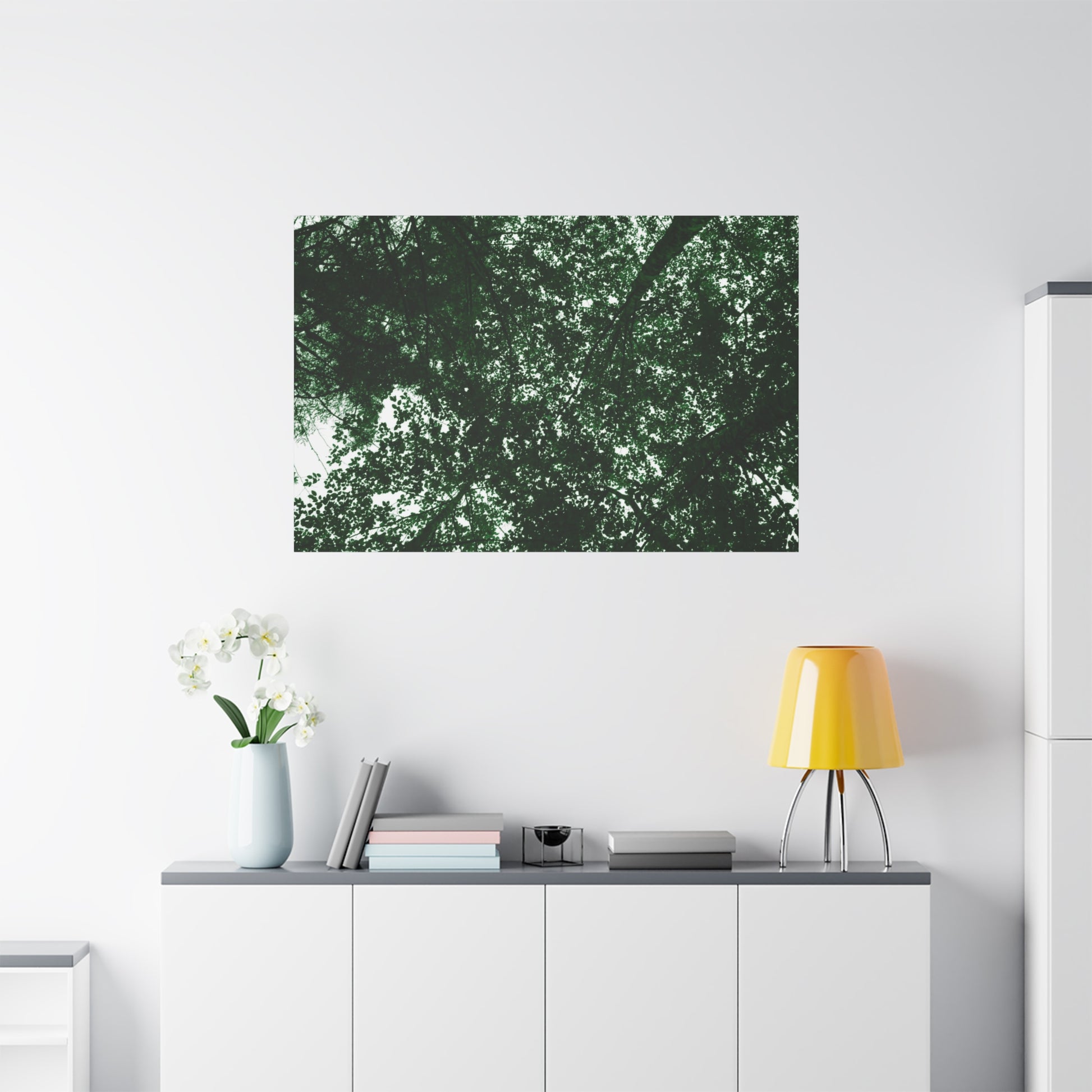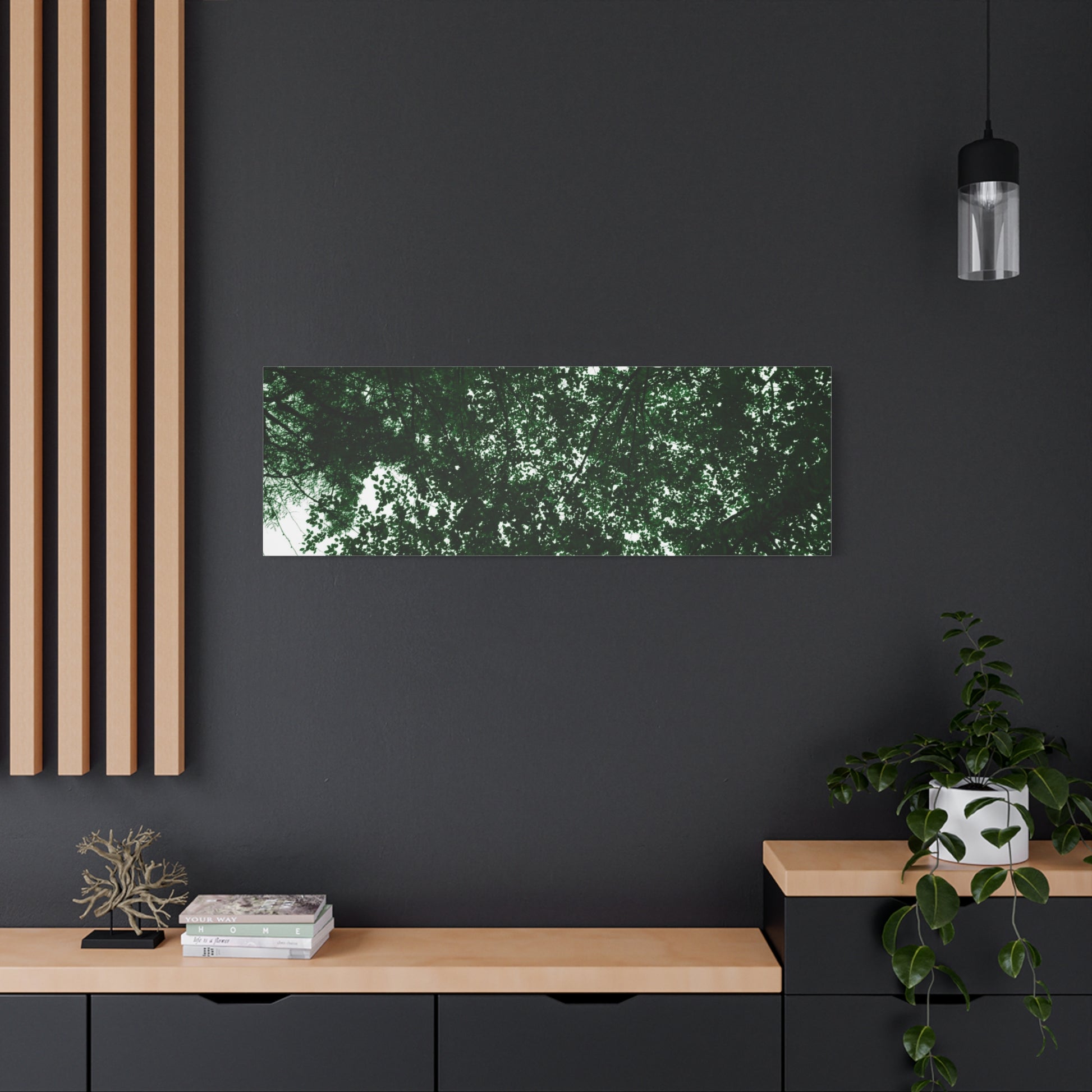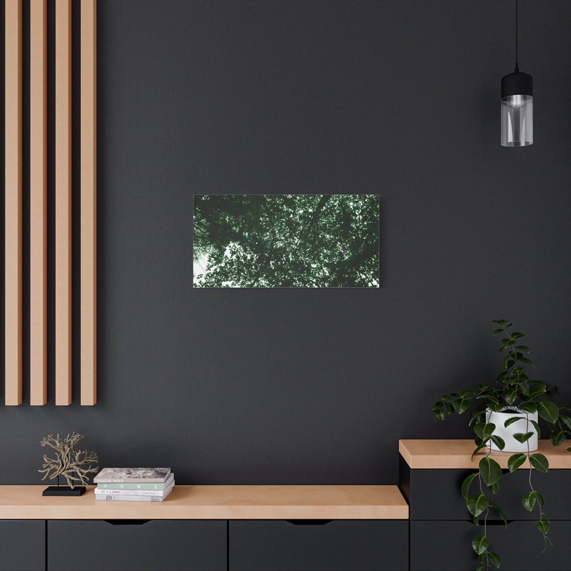 Experience the calming and peaceful presence of nature with this Towering Tree Tops Photography canvas print. Add a touch of serenity to your home or office decor with this sustainable and high-quality piece. Perfect for nature lovers and those who seek a connection to the outdoors. Ideal for Earth Day, Arbor Day, or as a gift for a nature enthusiast.
