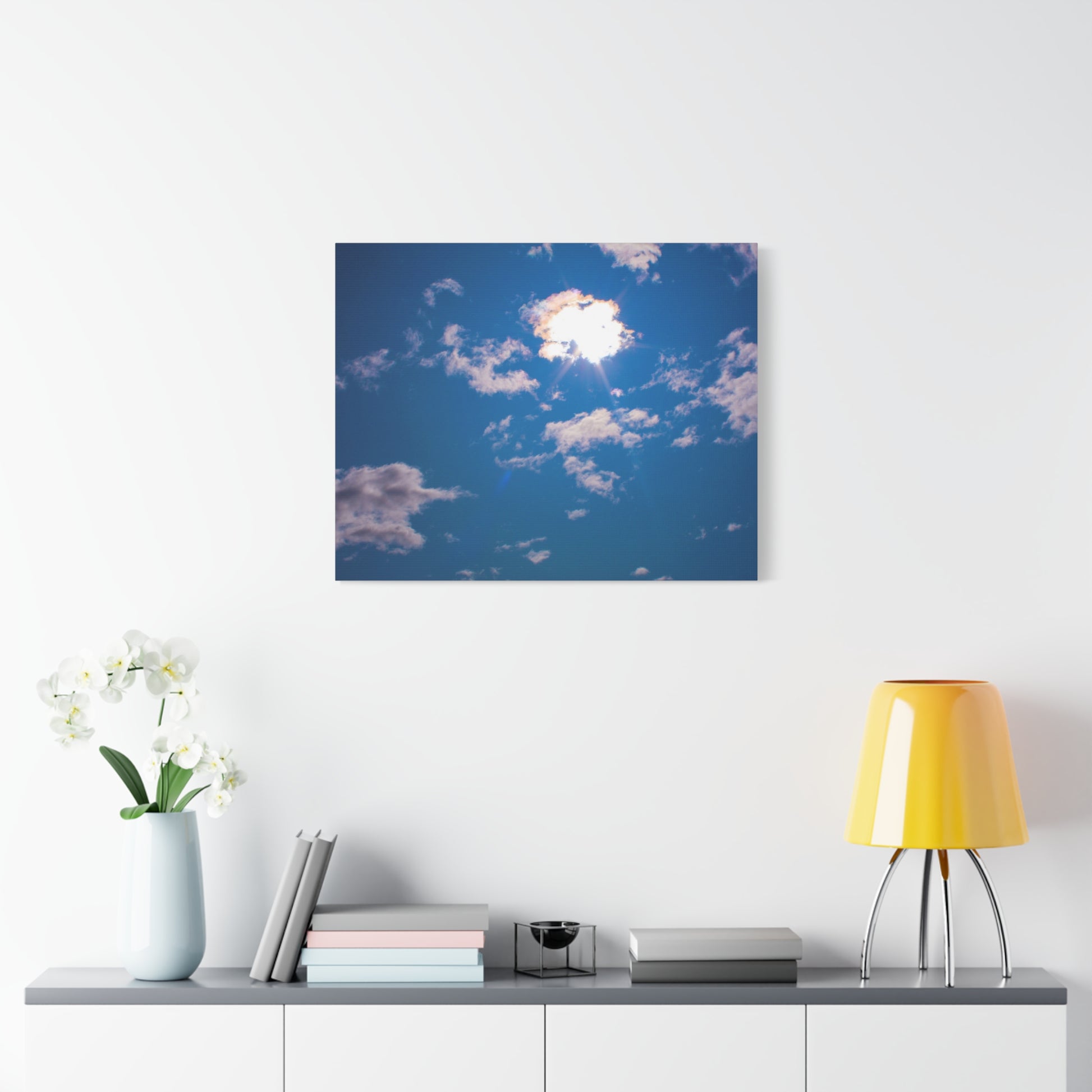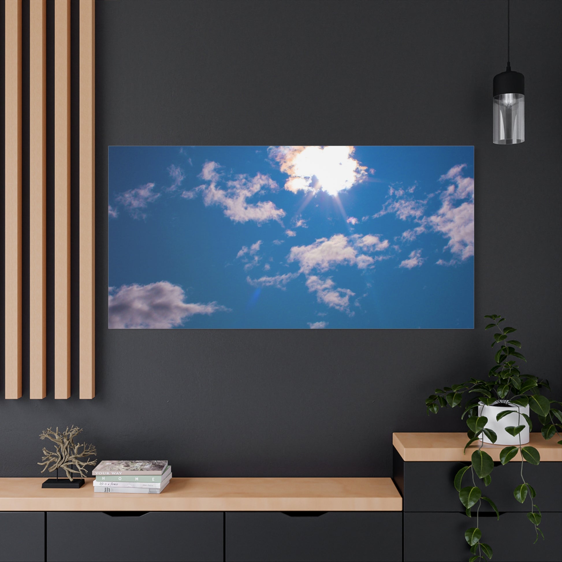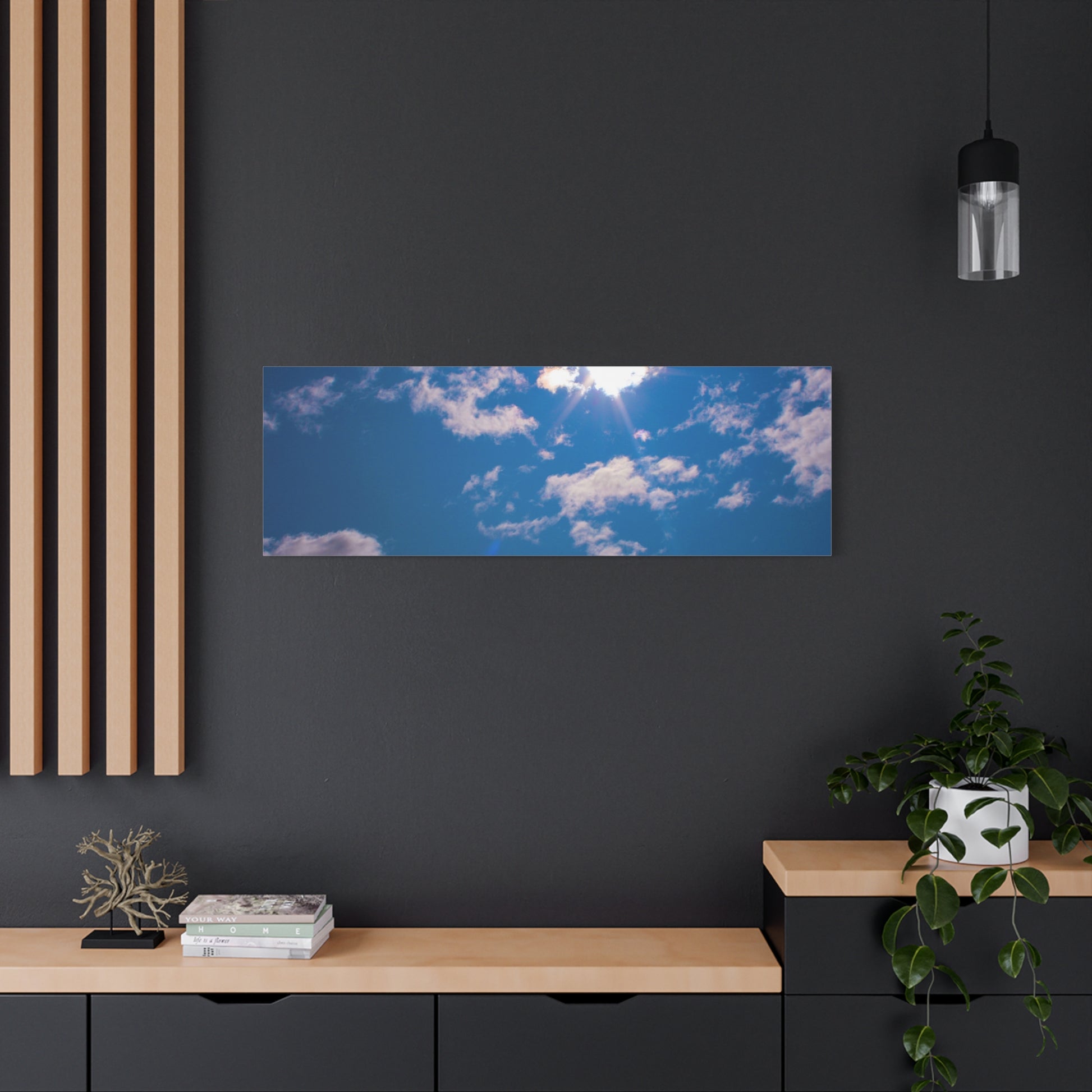 Bring the calming feeling of a blue sky and shining clouds into your home with this beautiful canvas print. Perfect for those who love peaceful and serene artwork, this canvas will add a touch of tranquility to any room. Ideal for home decor, offices, and as a gift for nature lovers and art enthusiasts. Great for birthdays, housewarmings, and any special occasion.