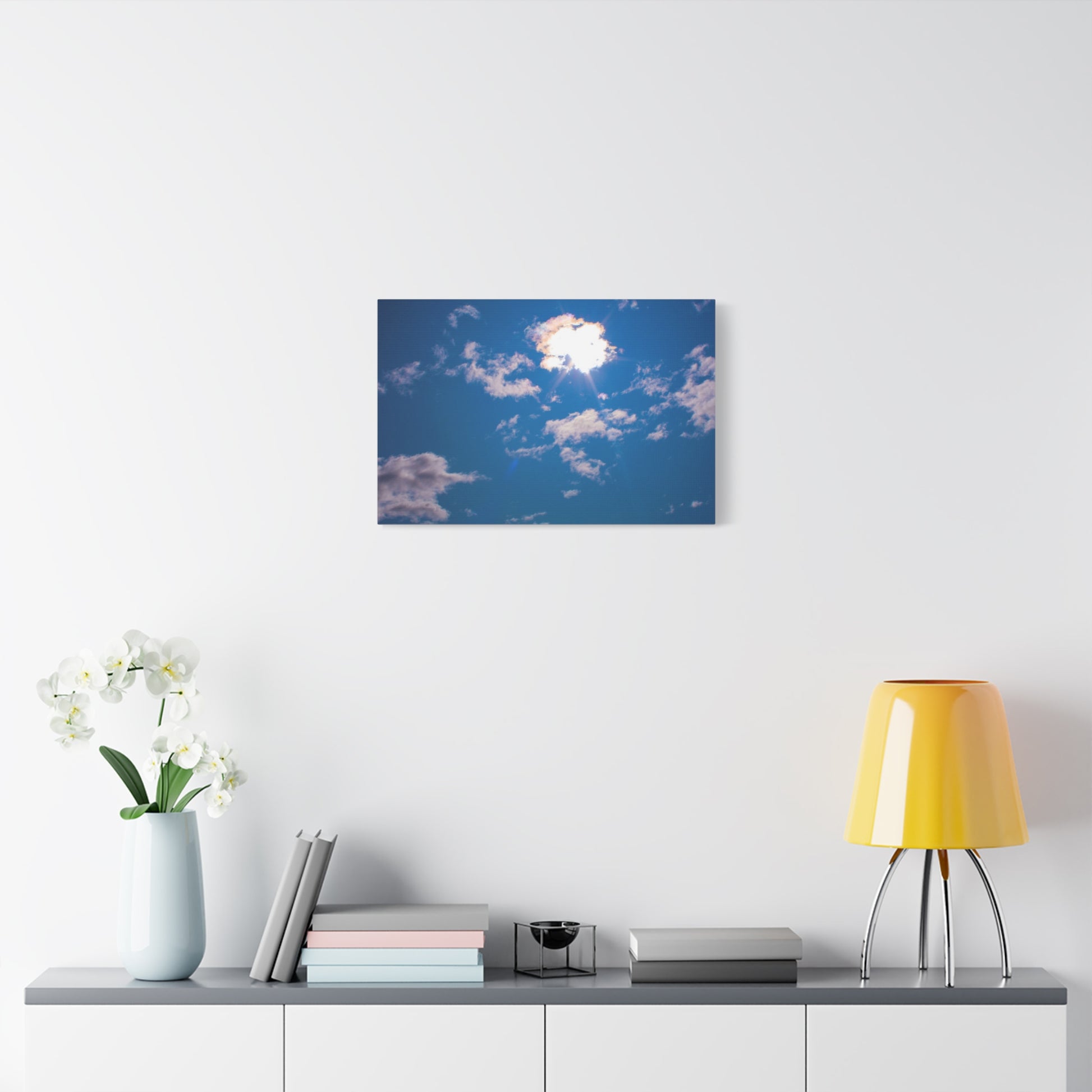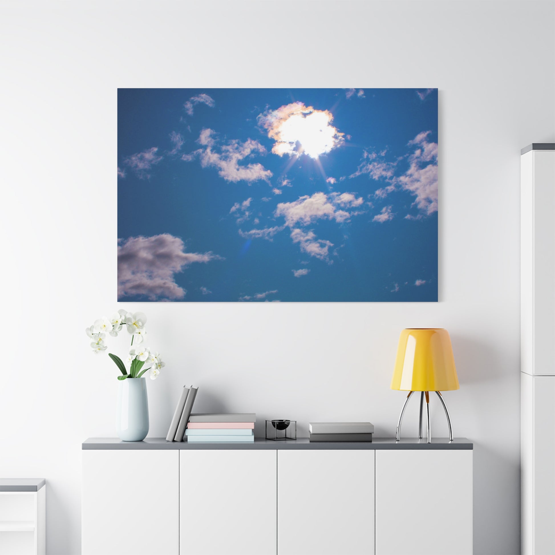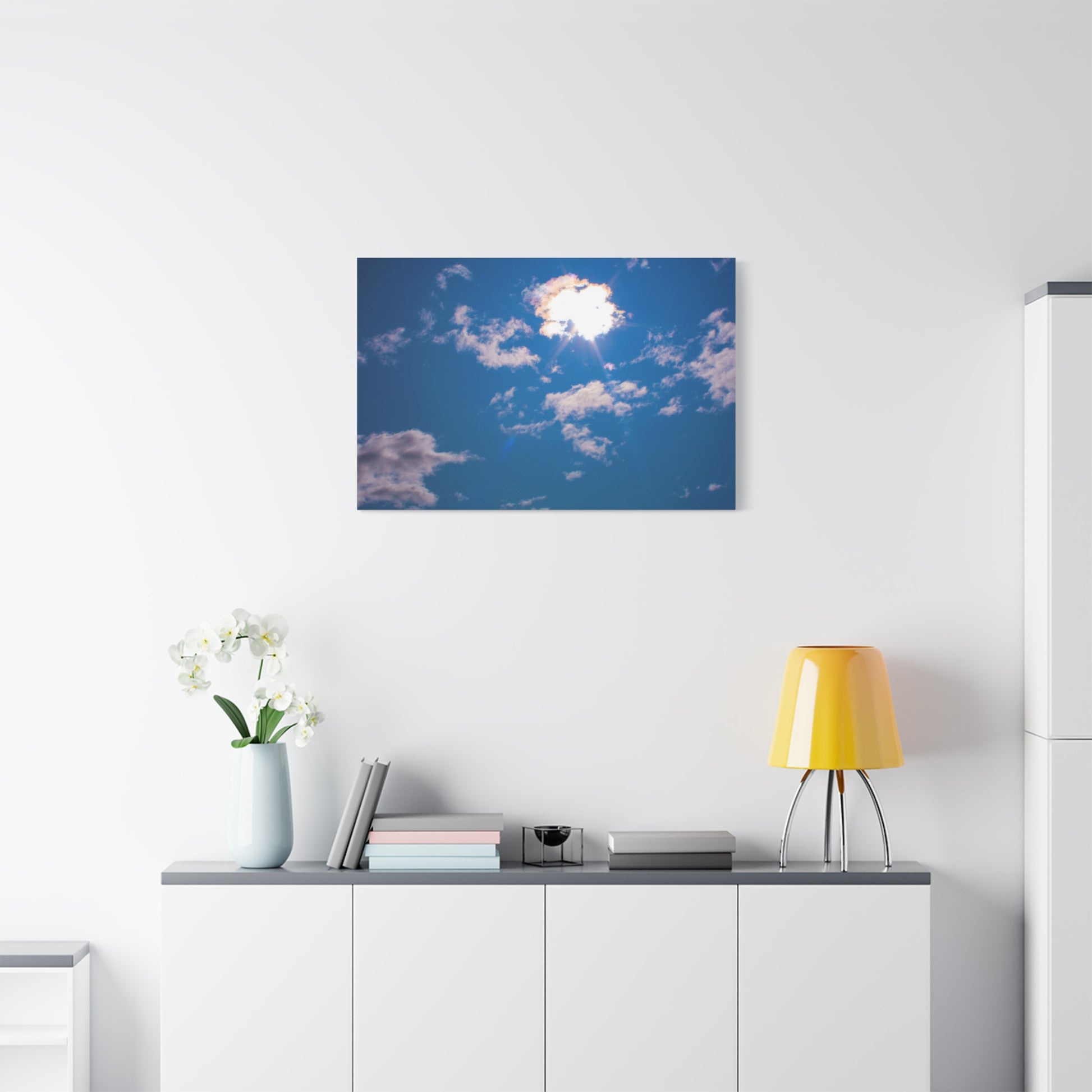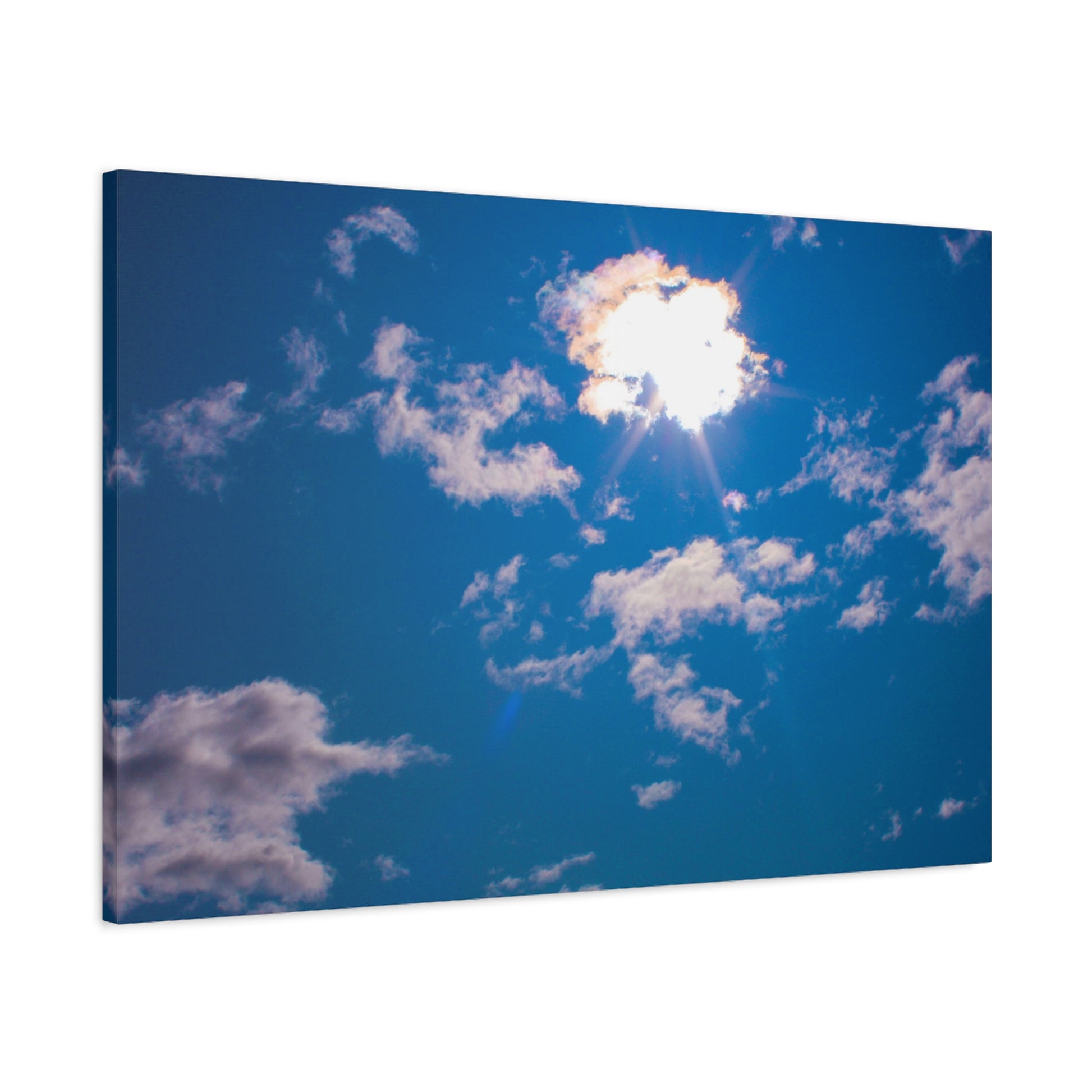 Bring the calming feeling of a blue sky and shining clouds into your home with this beautiful canvas print. Perfect for those who love peaceful and serene artwork, this canvas will add a touch of tranquility to any room. Ideal for home decor, offices, and as a gift for nature lovers and art enthusiasts. Great for birthdays, housewarmings, and any special occasion.