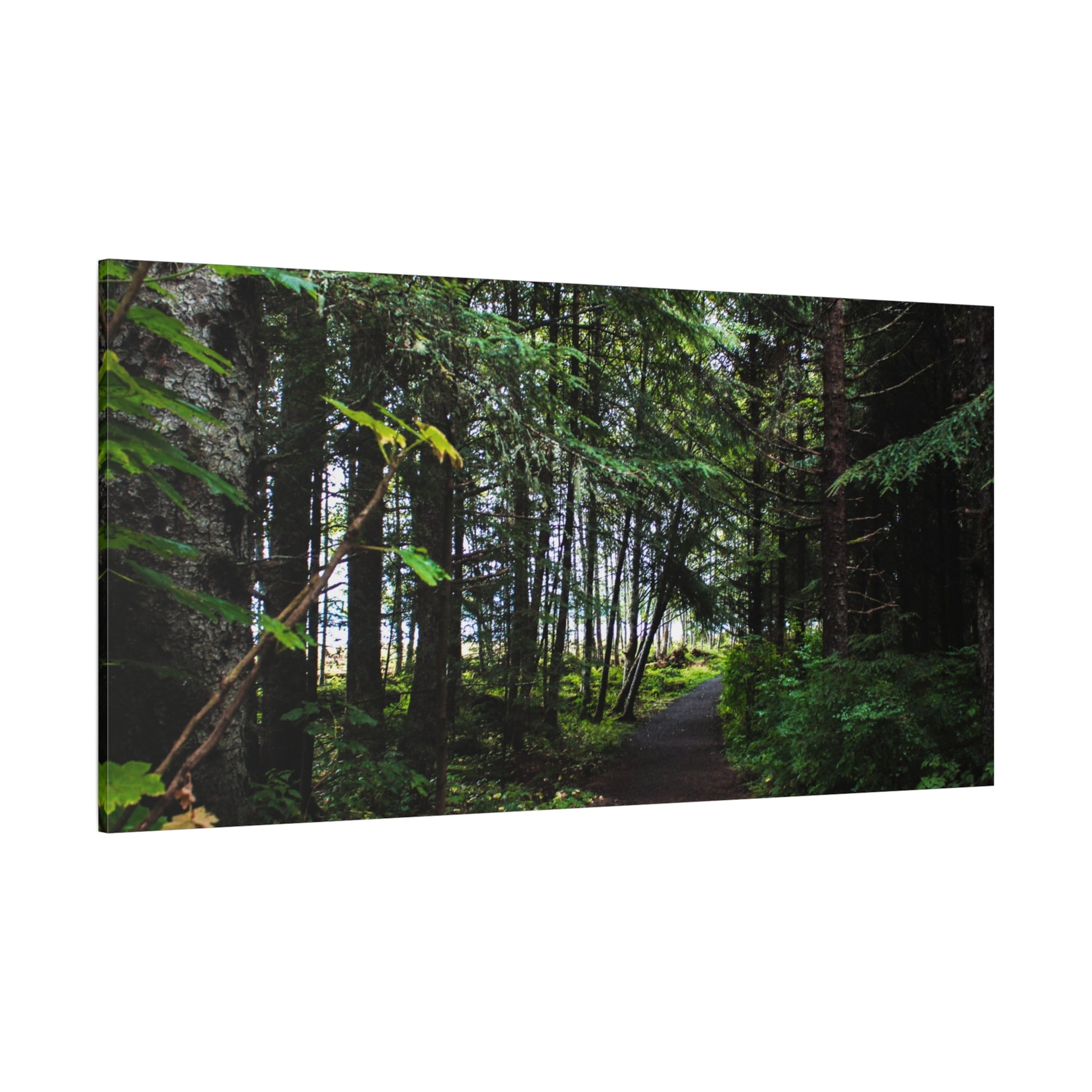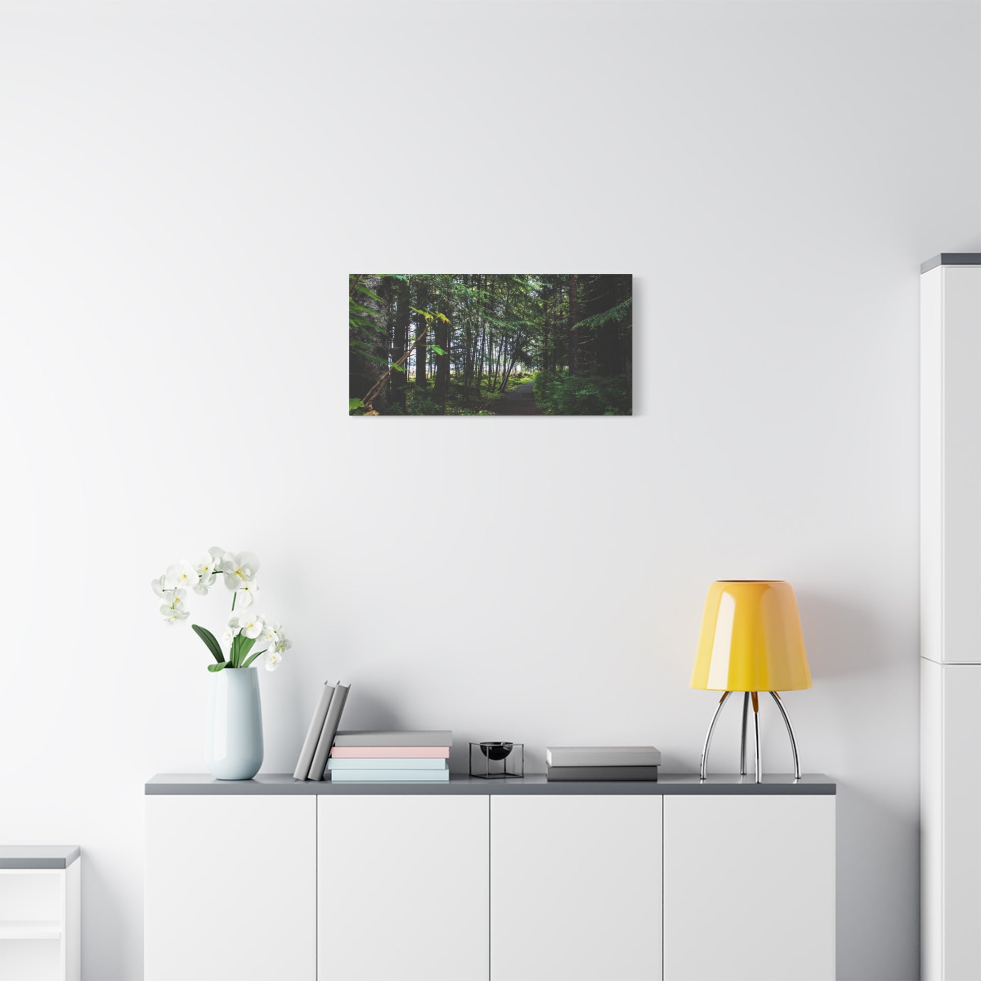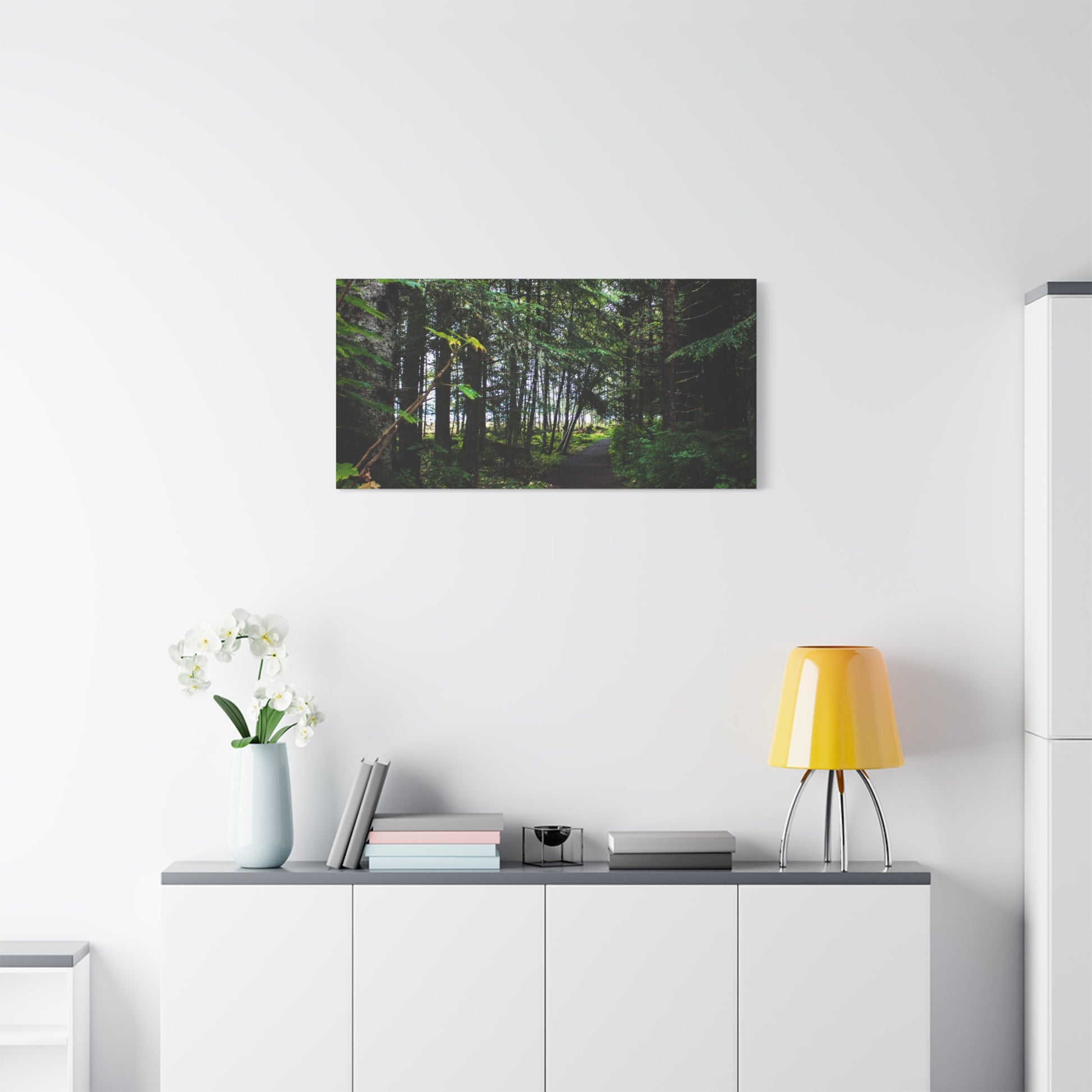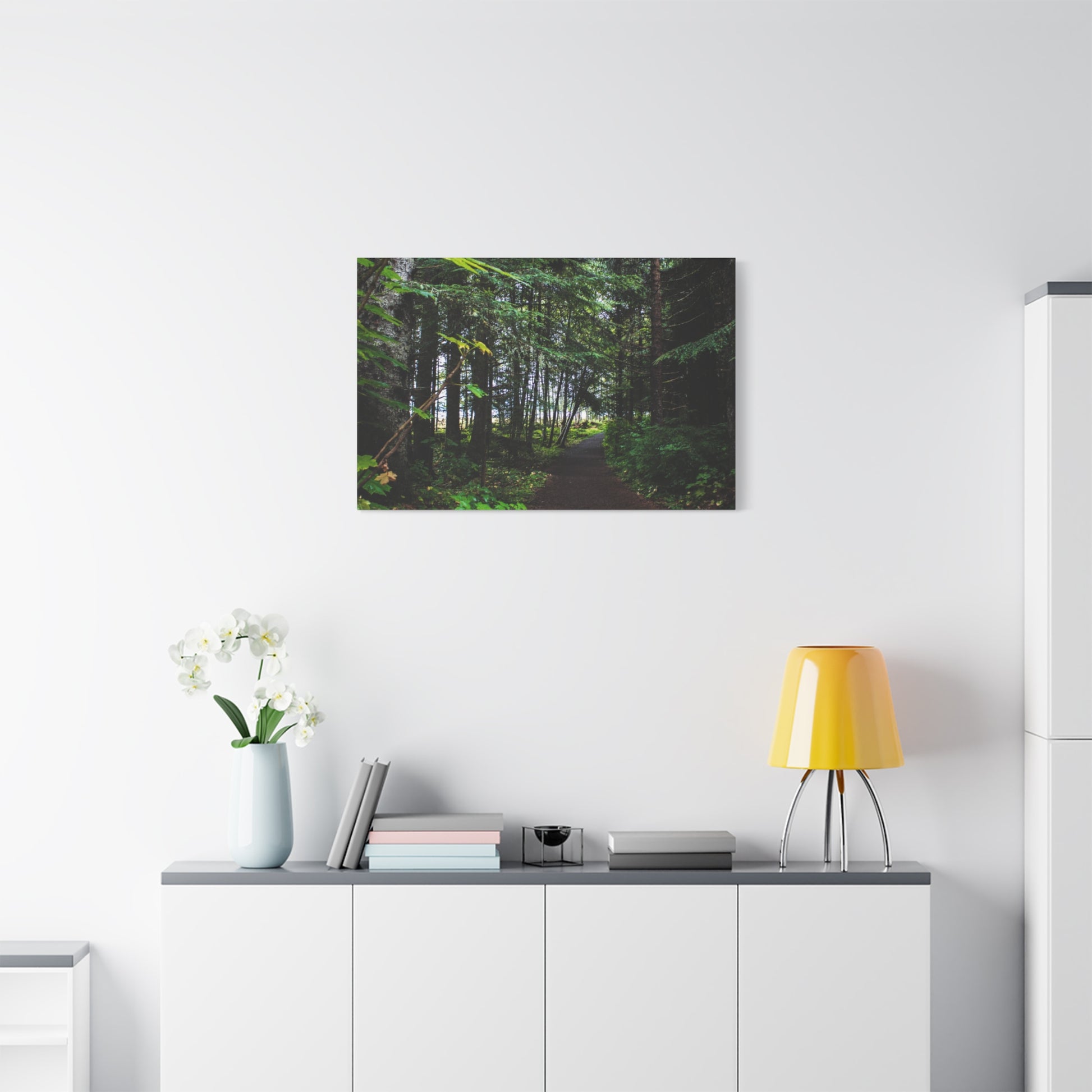 Bring the peaceful atmosphere of a trail through the trees into your home with this matte canvas print. Perfect for nature lovers and those who appreciate simple beauty. Ideal for decorating a living room, bedroom, or office. Great for nature-themed home decor, Earth Day, or as a gift for outdoor enthusiasts.
