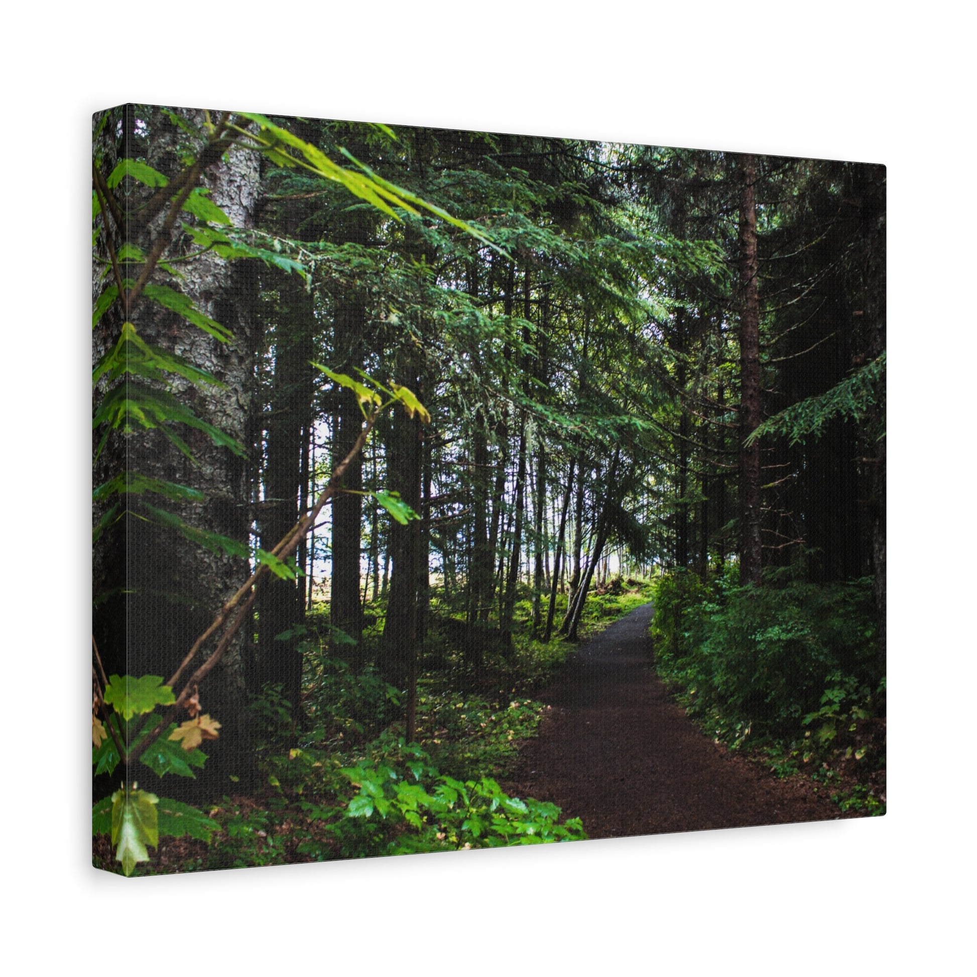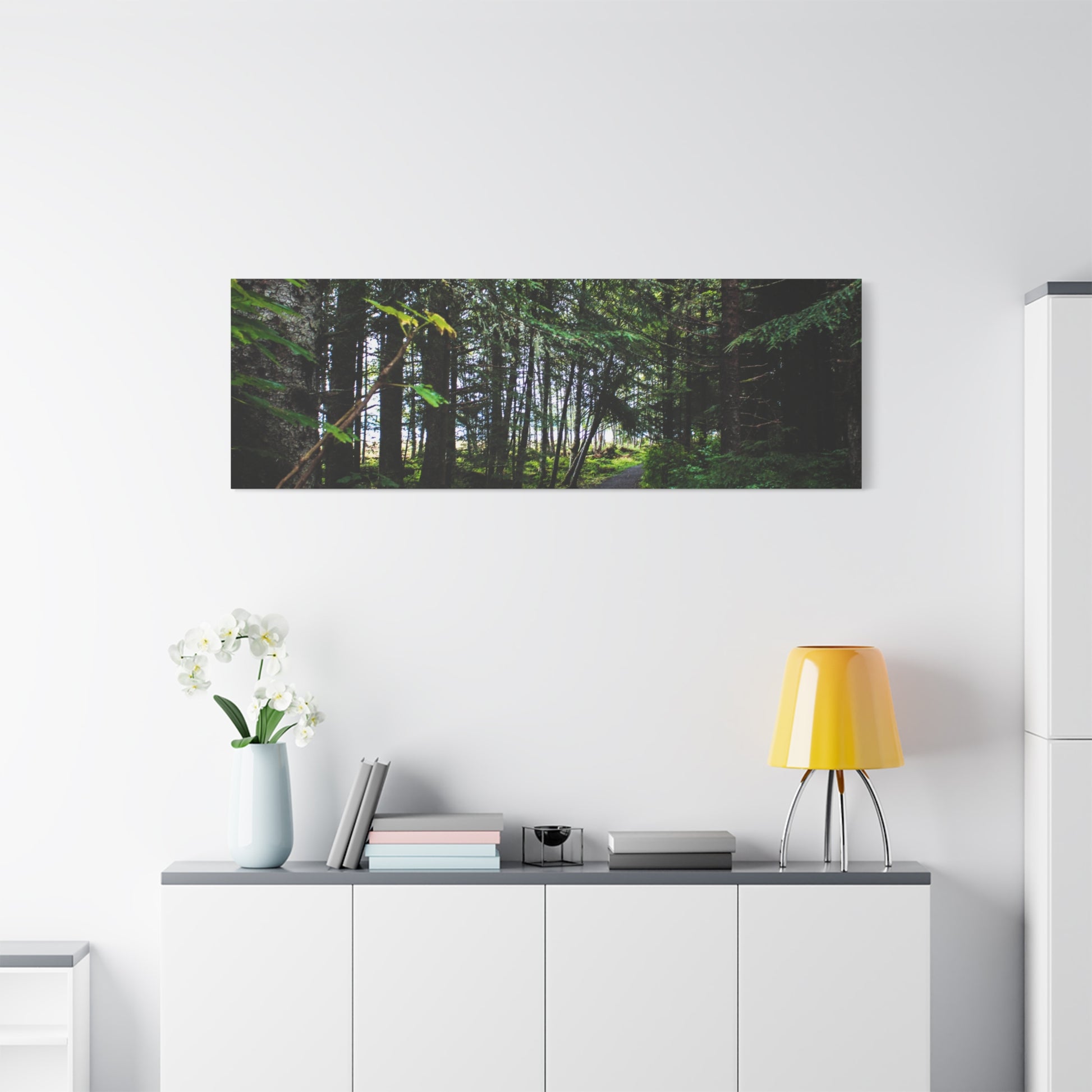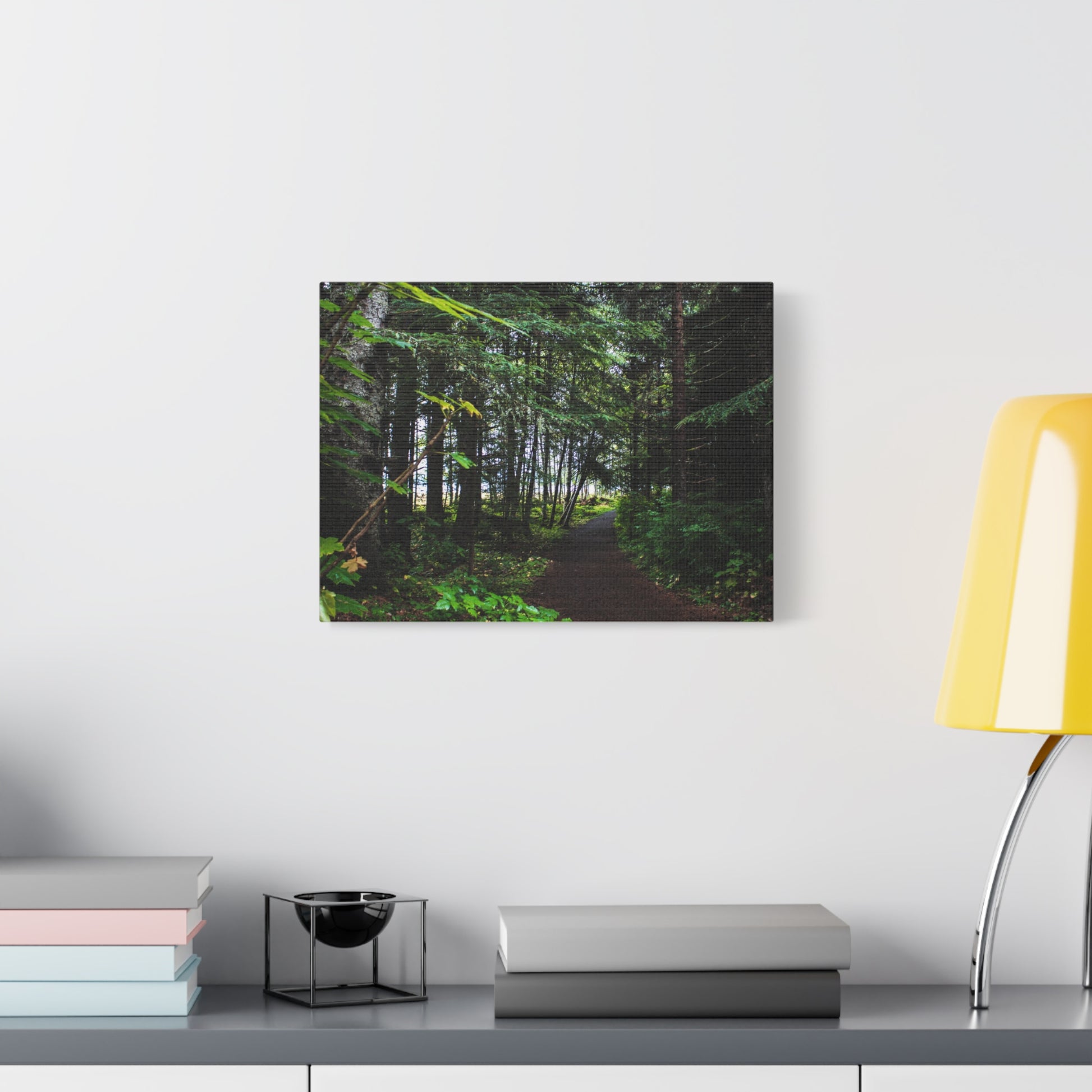 Bring the peaceful atmosphere of a trail through the trees into your home with this matte canvas print. Perfect for nature lovers and those who appreciate simple beauty. Ideal for decorating a living room, bedroom, or office. Great for nature-themed home decor, Earth Day, or as a gift for outdoor enthusiasts.