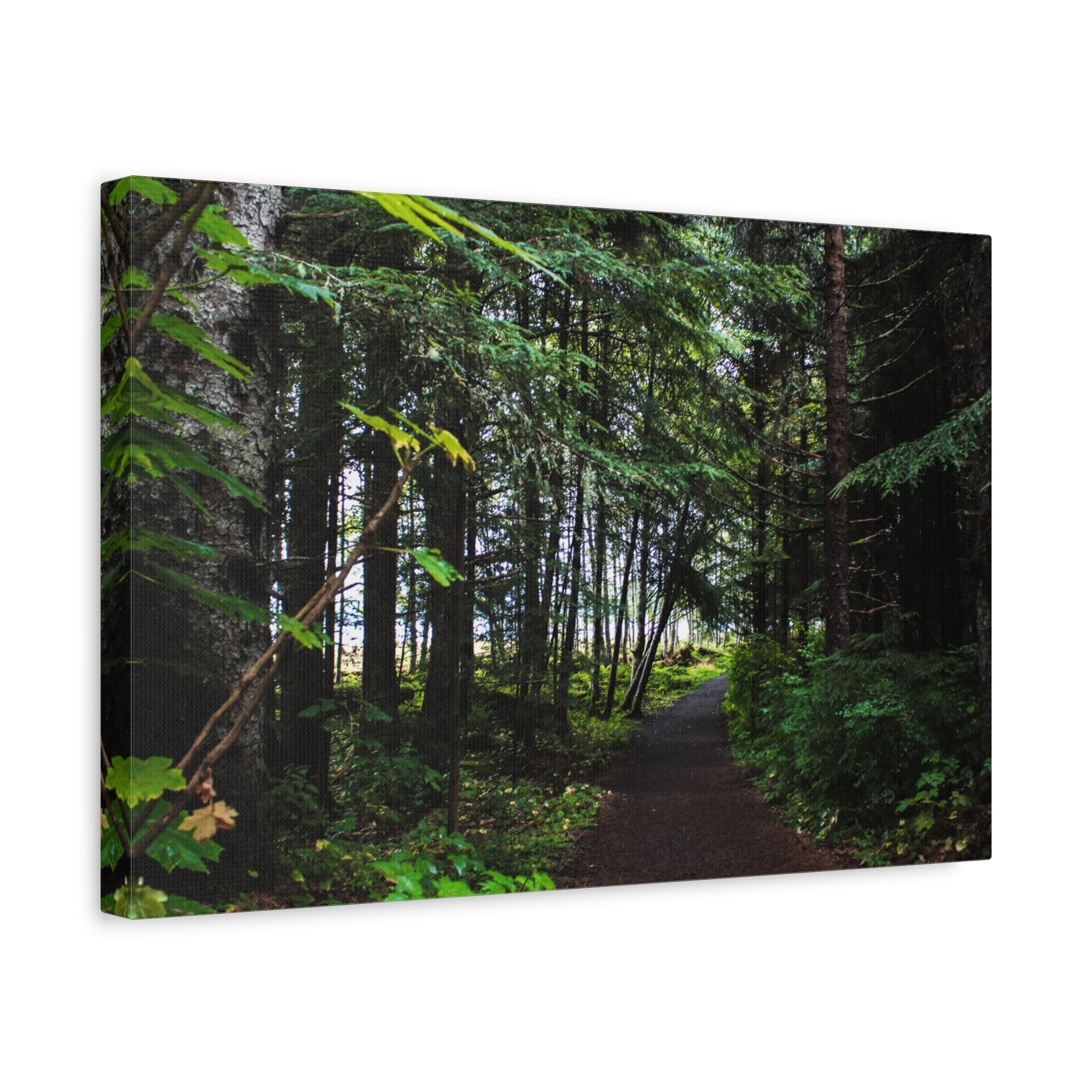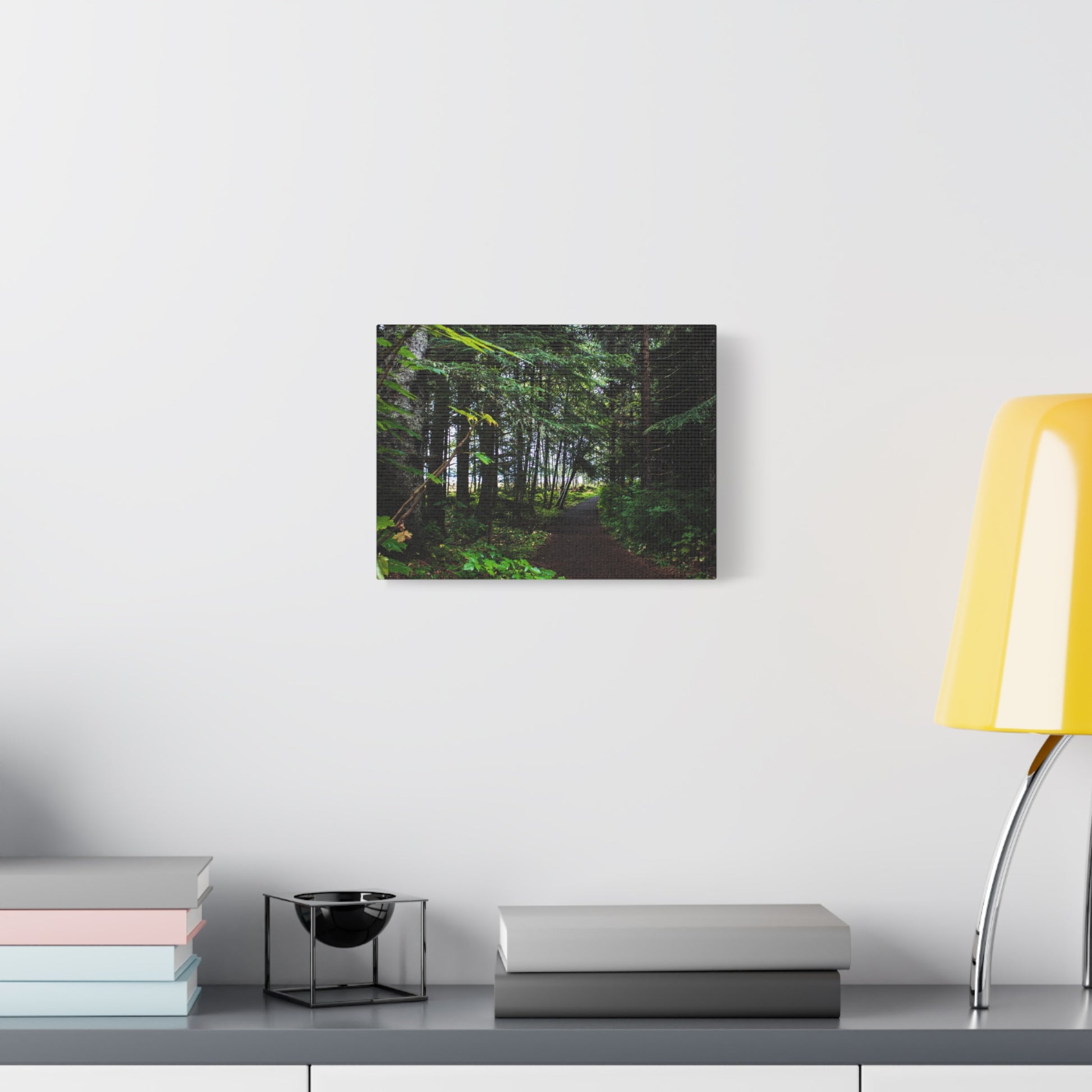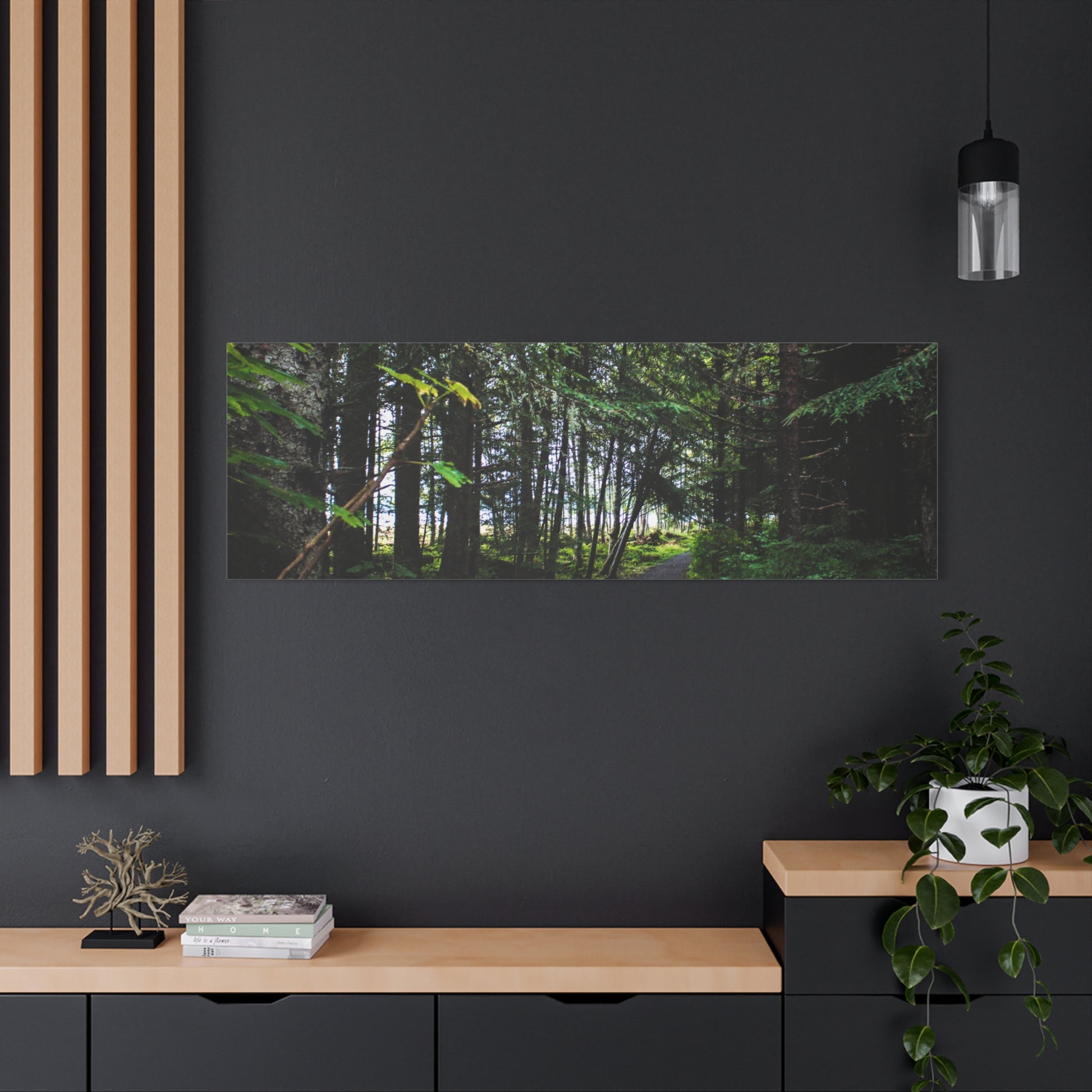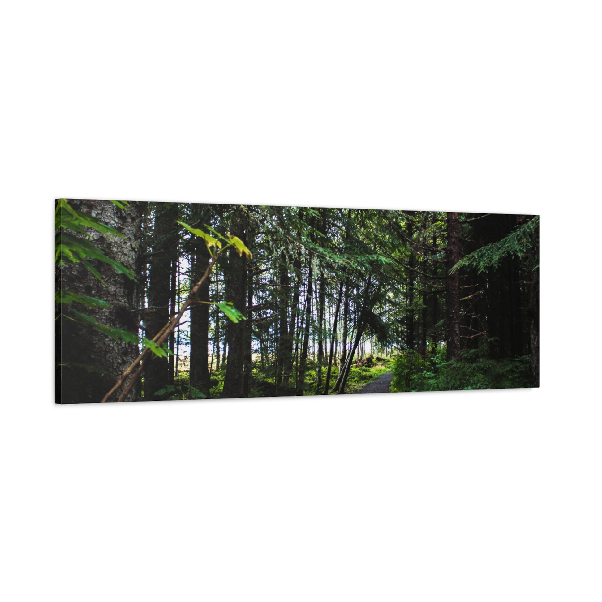 Bring the peaceful atmosphere of a trail through the trees into your home with this matte canvas print. Perfect for nature lovers and those who appreciate simple beauty. Ideal for decorating a living room, bedroom, or office. Great for nature-themed home decor, Earth Day, or as a gift for outdoor enthusiasts.